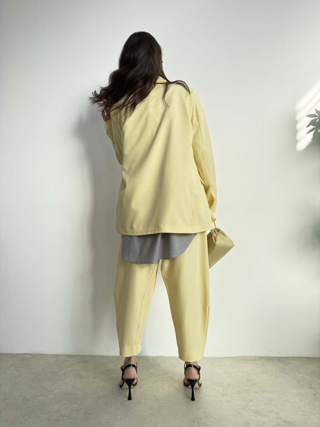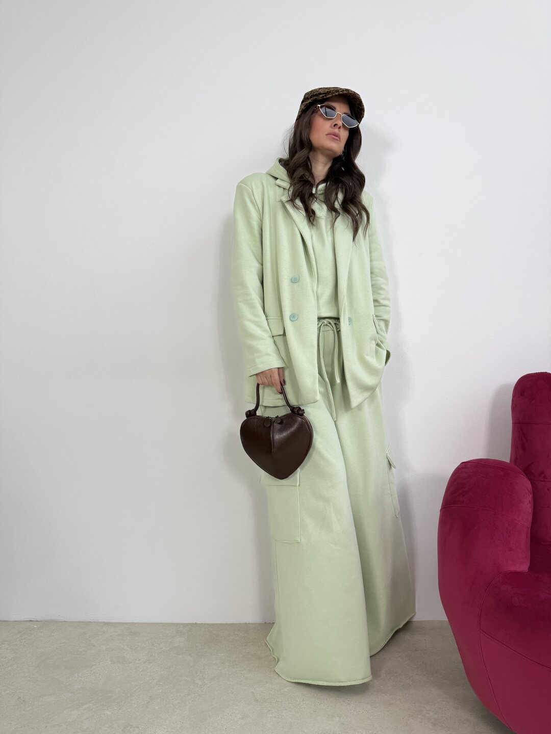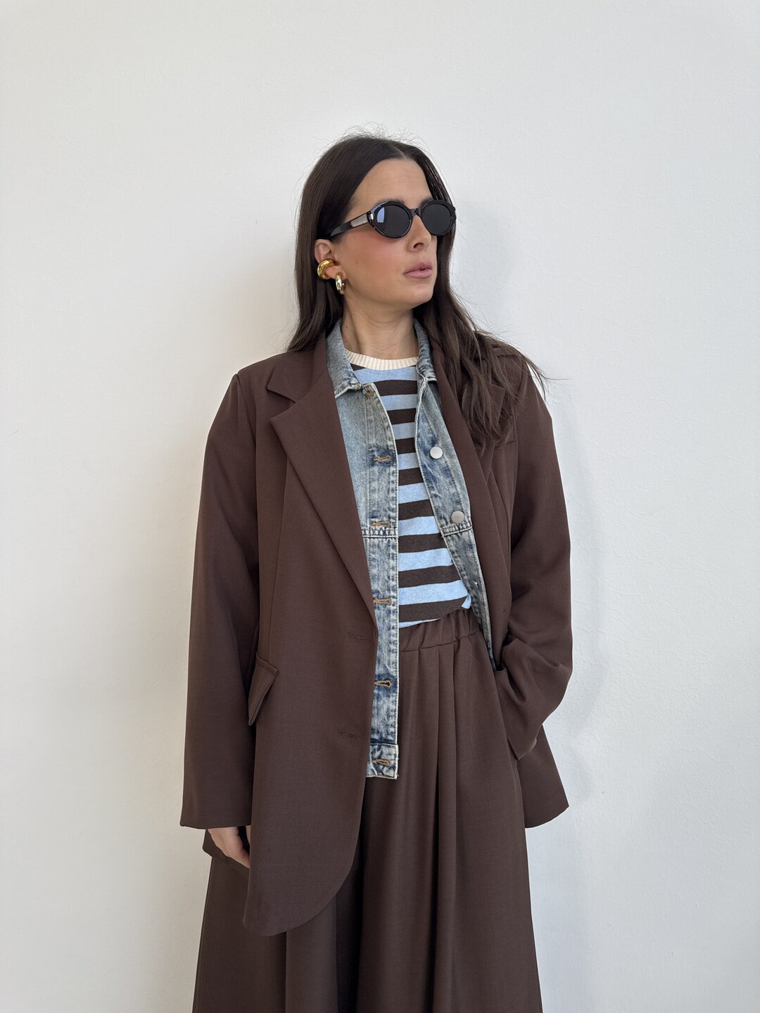 Modello giacca over. Foderata con spallina. Finte tasche a pattina. Chiusura con 2 bottoni.