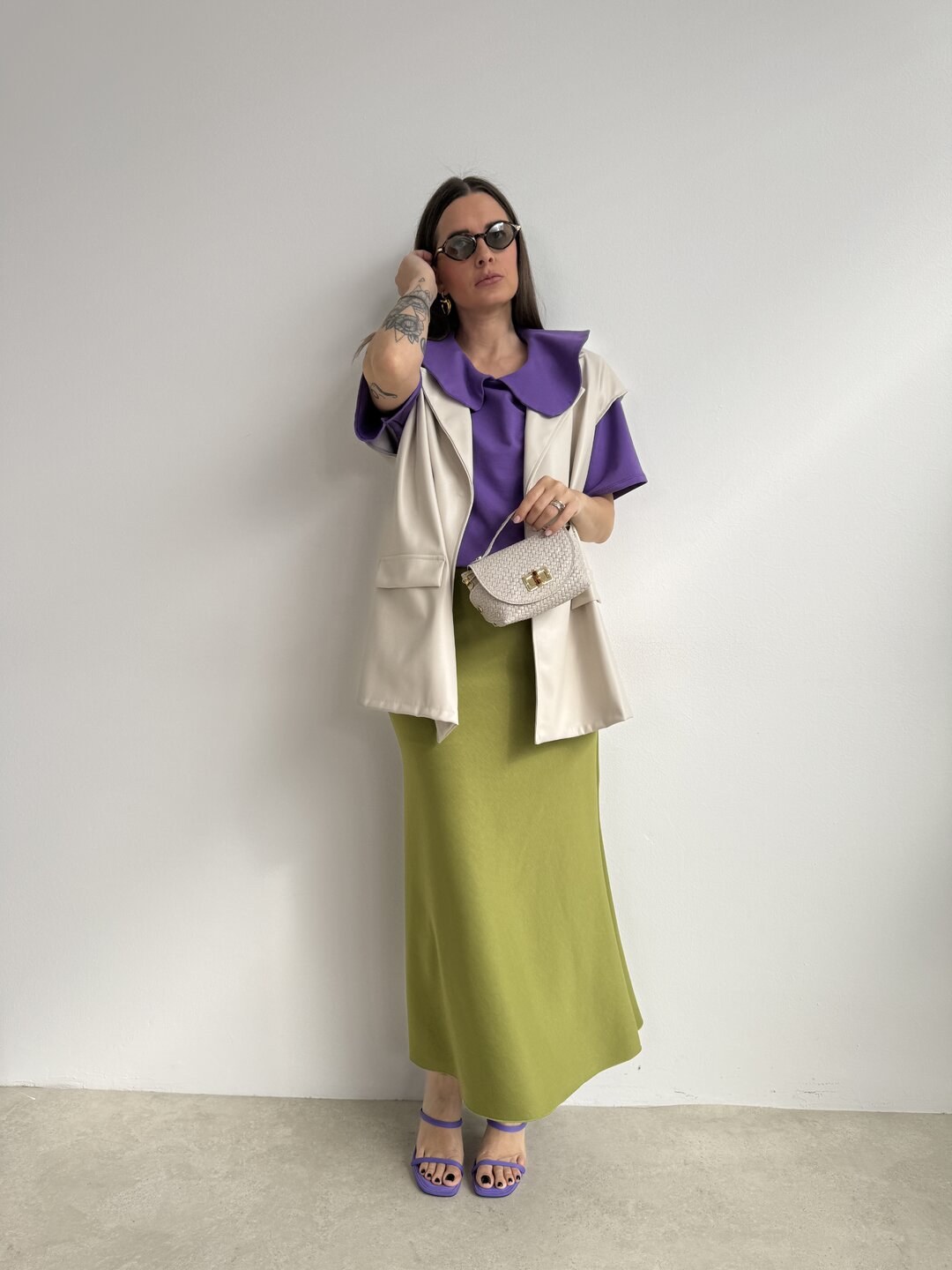 modello gonna lunga con effetto leggermente svasato in fondo. Molla in vita.