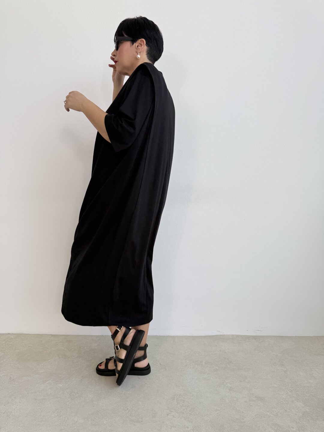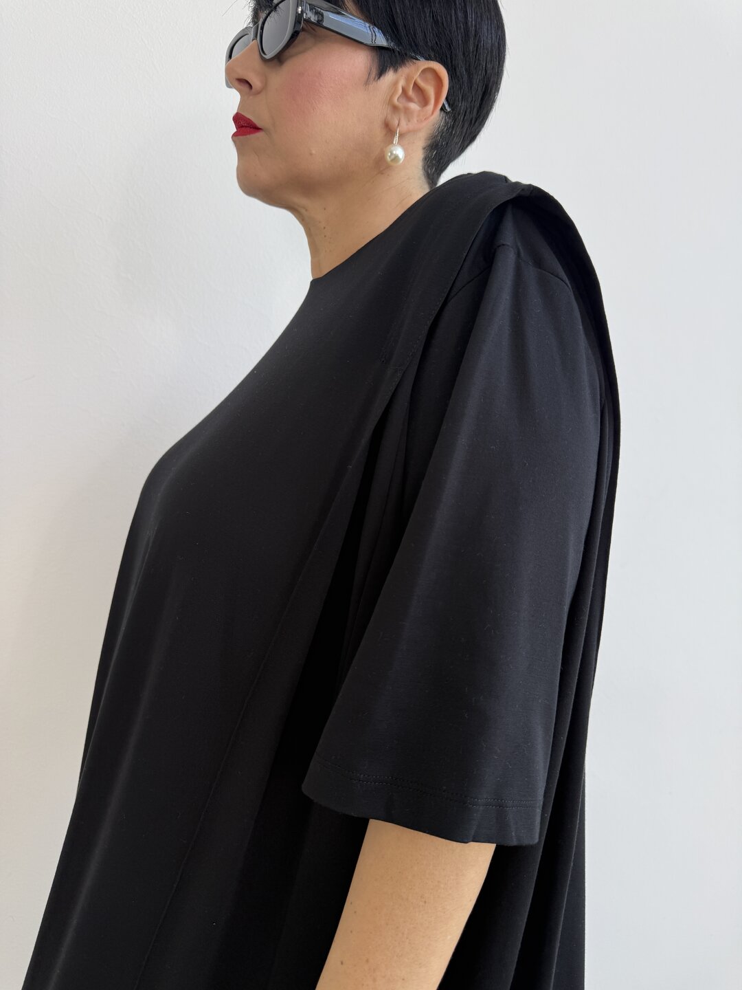 Dettaglio piega strutturata che si sviluppa dalla spalla.