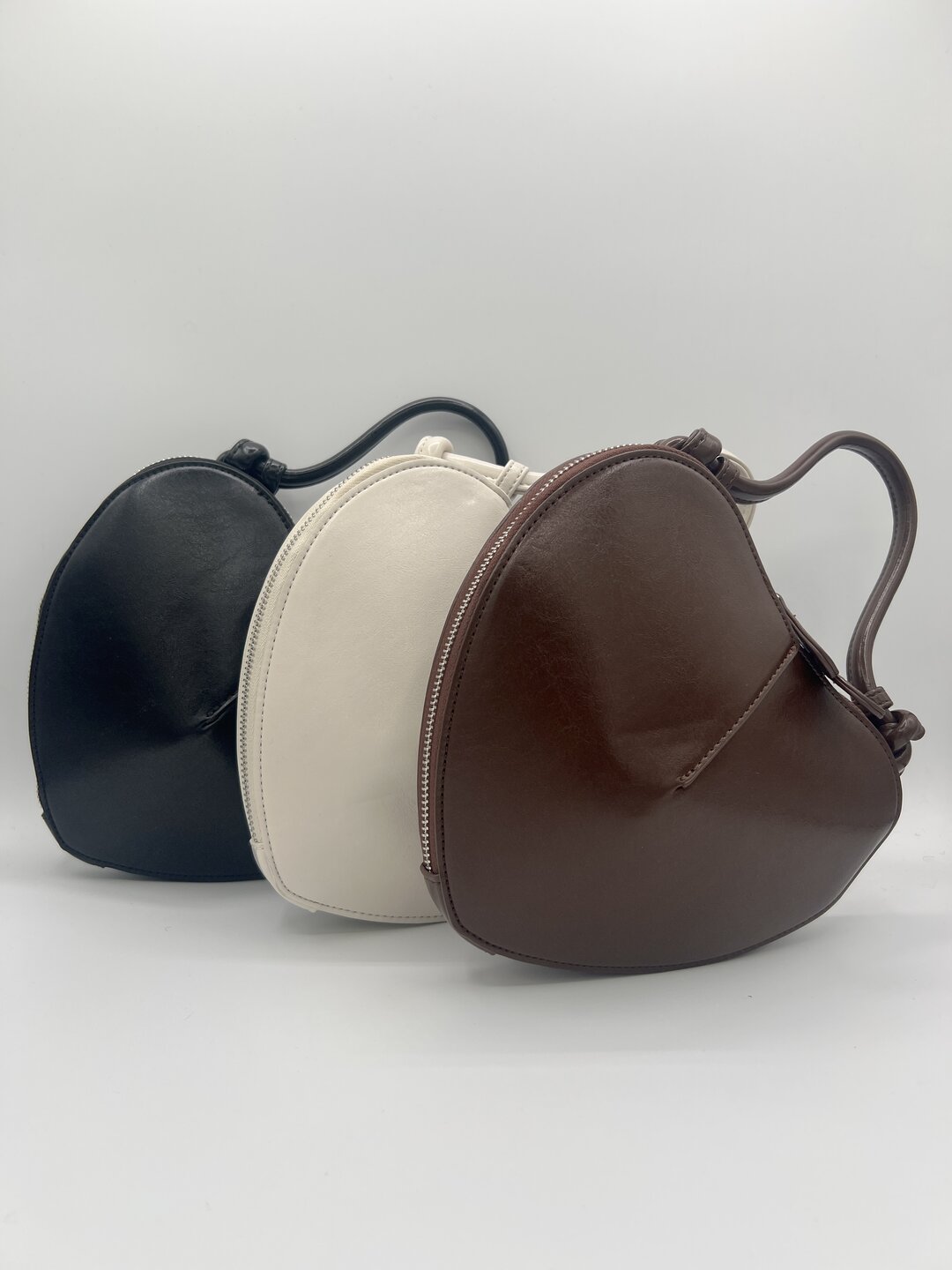 Modello mini a forma di cuore con manico rigido e tracolla removibile.