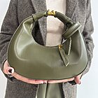 • modello mezza luna rigido con manico regolabile e tracolla rimovibile. 4 piedini sulla base e chiusura con zip.