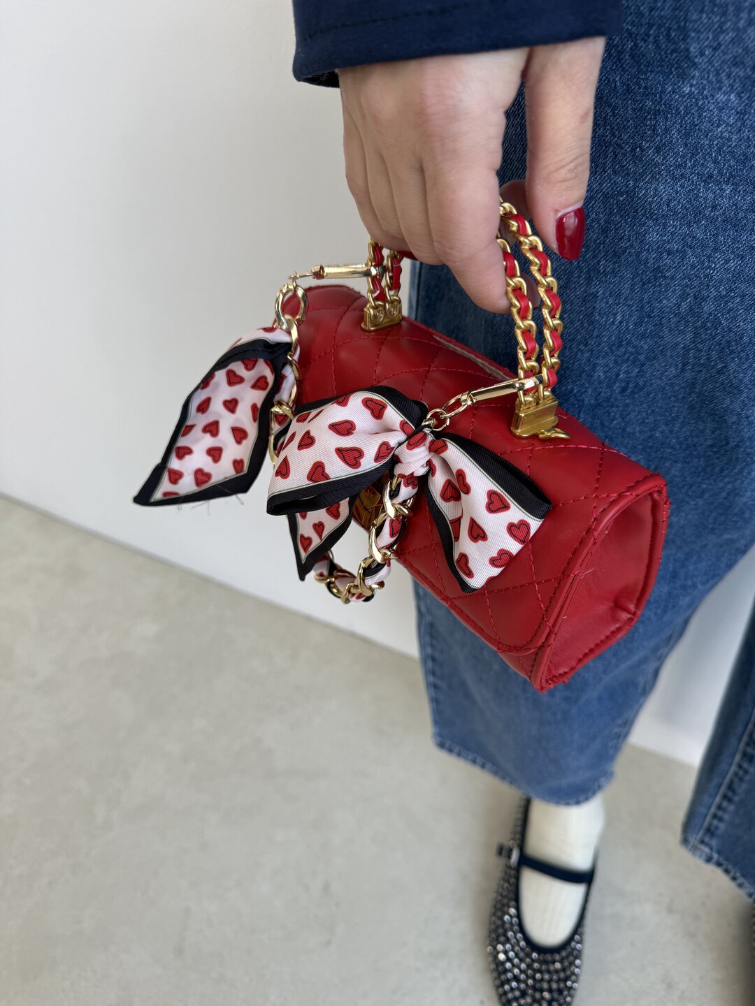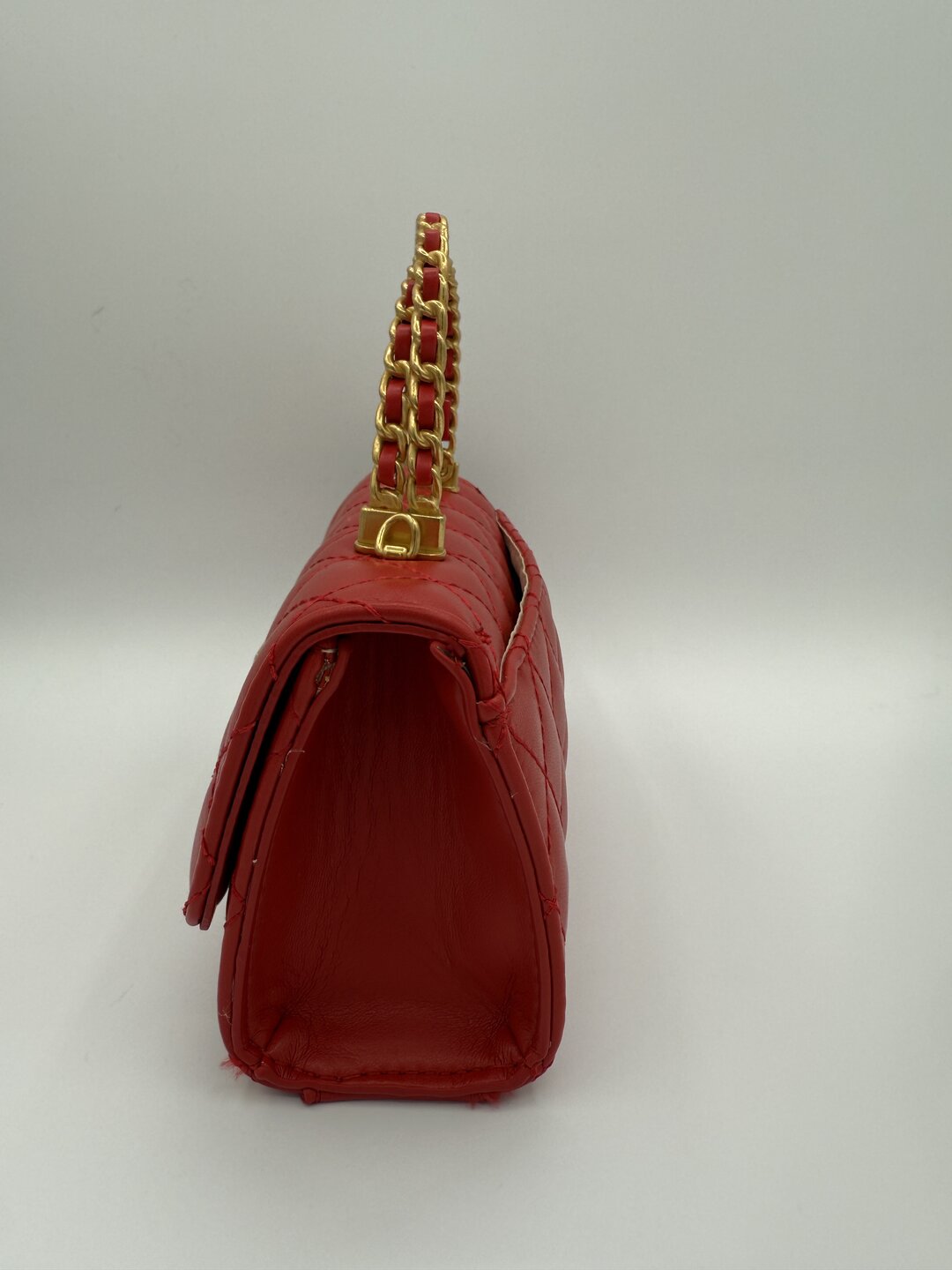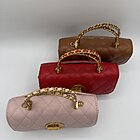 Modello mini bag trapunto con doppio manico rigido. Chiusura sotto patta. Taschina interna e tracolla.