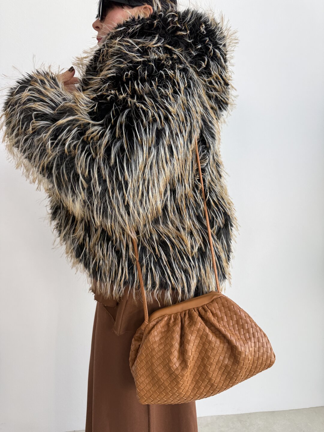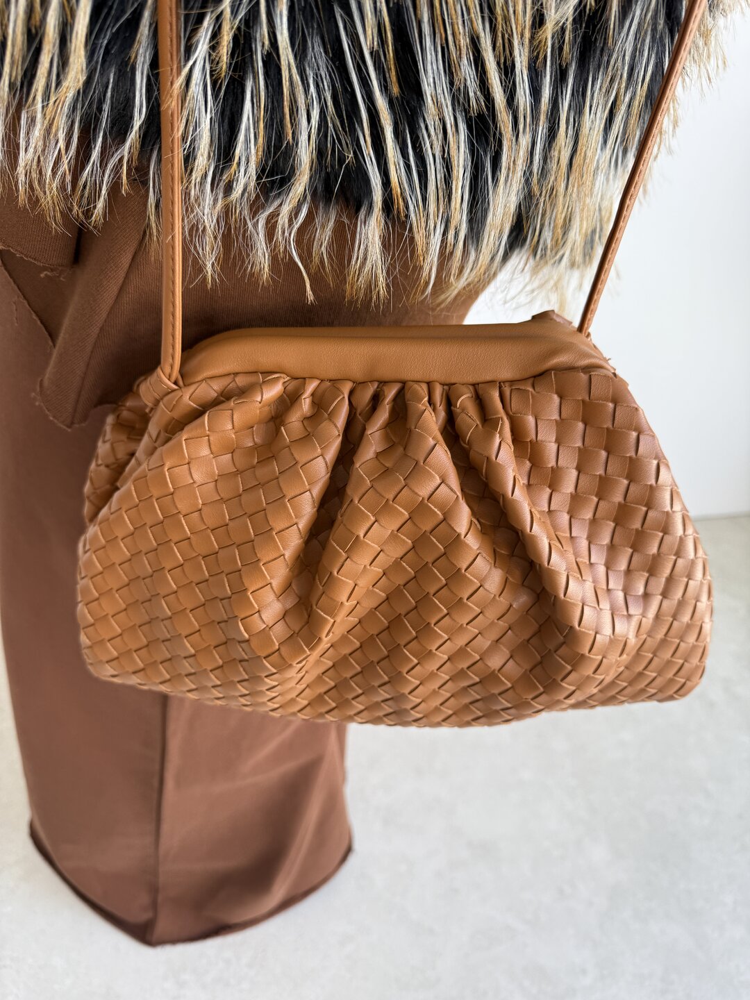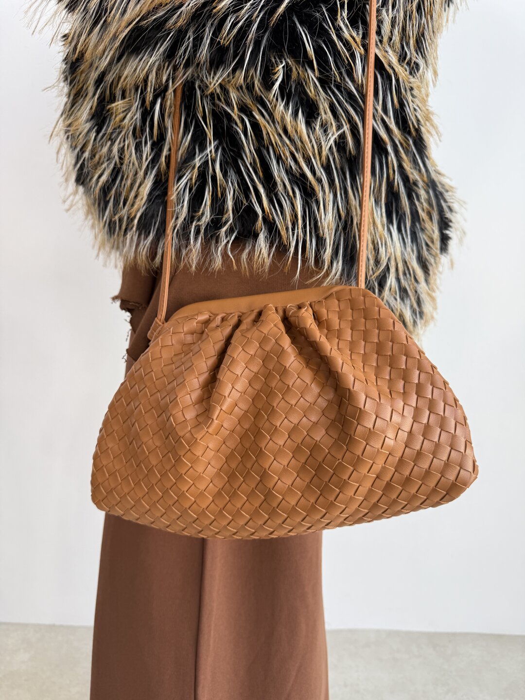 Composizione ecopelle intrecciata all’esterno e fodera in poliestere all’interno.