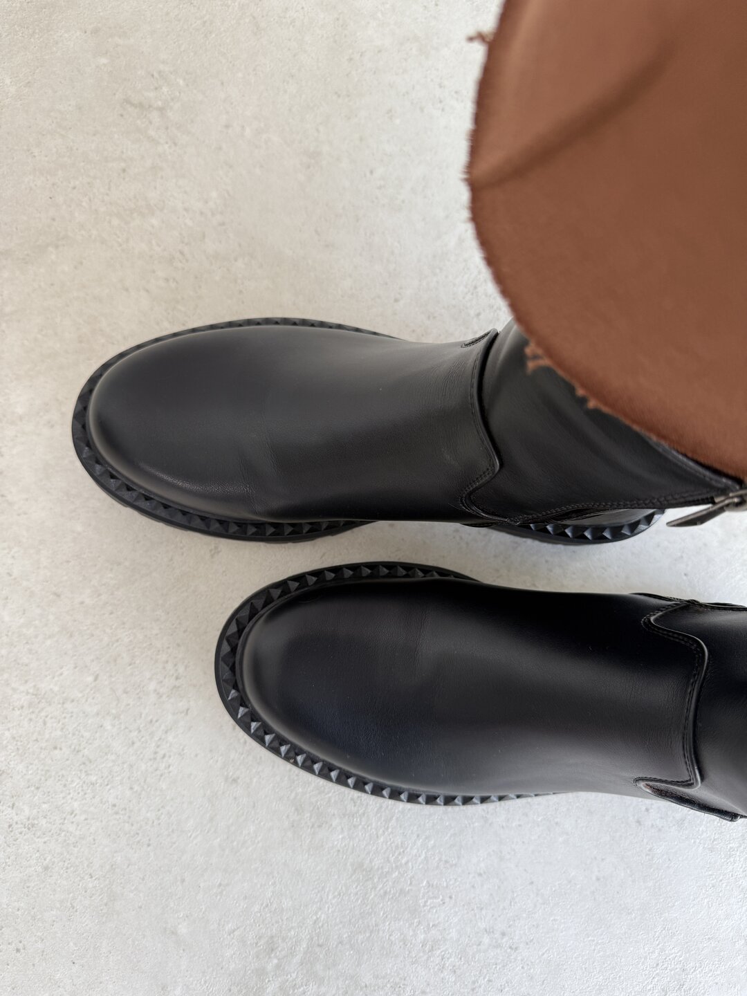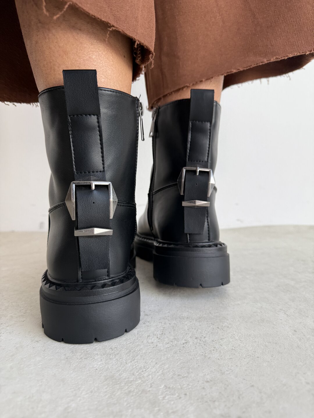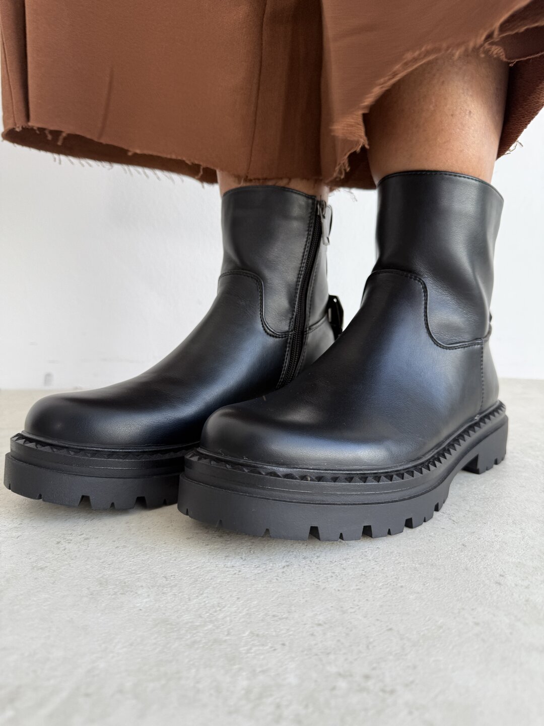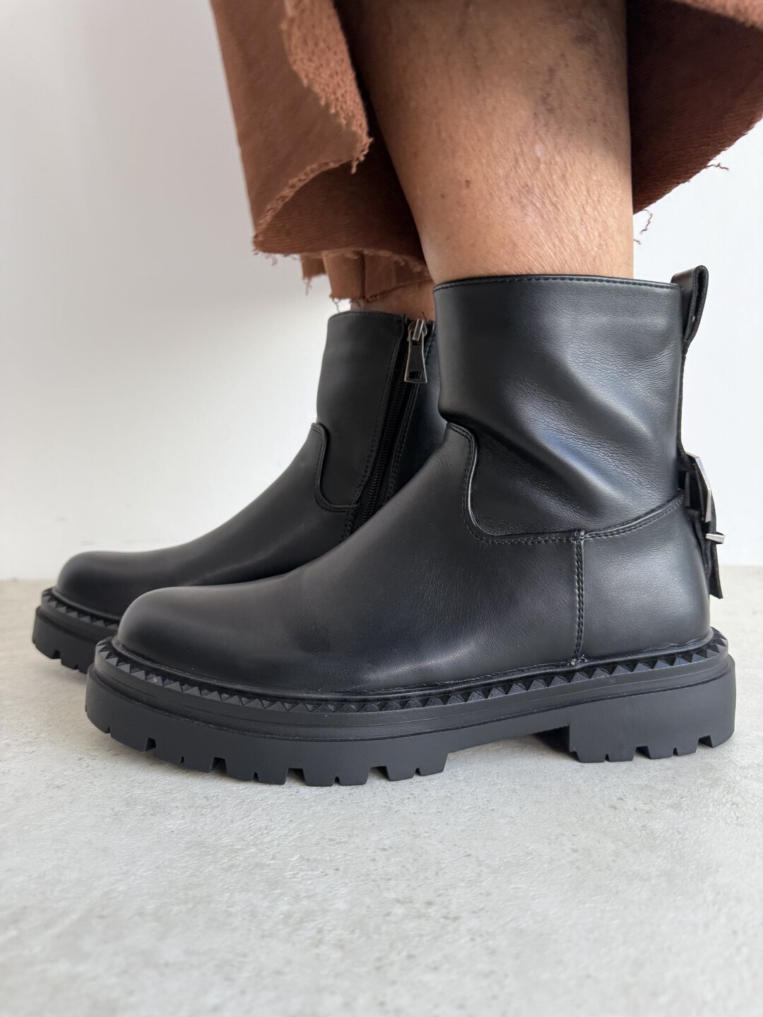 Modello con fondo carrarmato e allacciatura con zip. Fibbia sul retro.