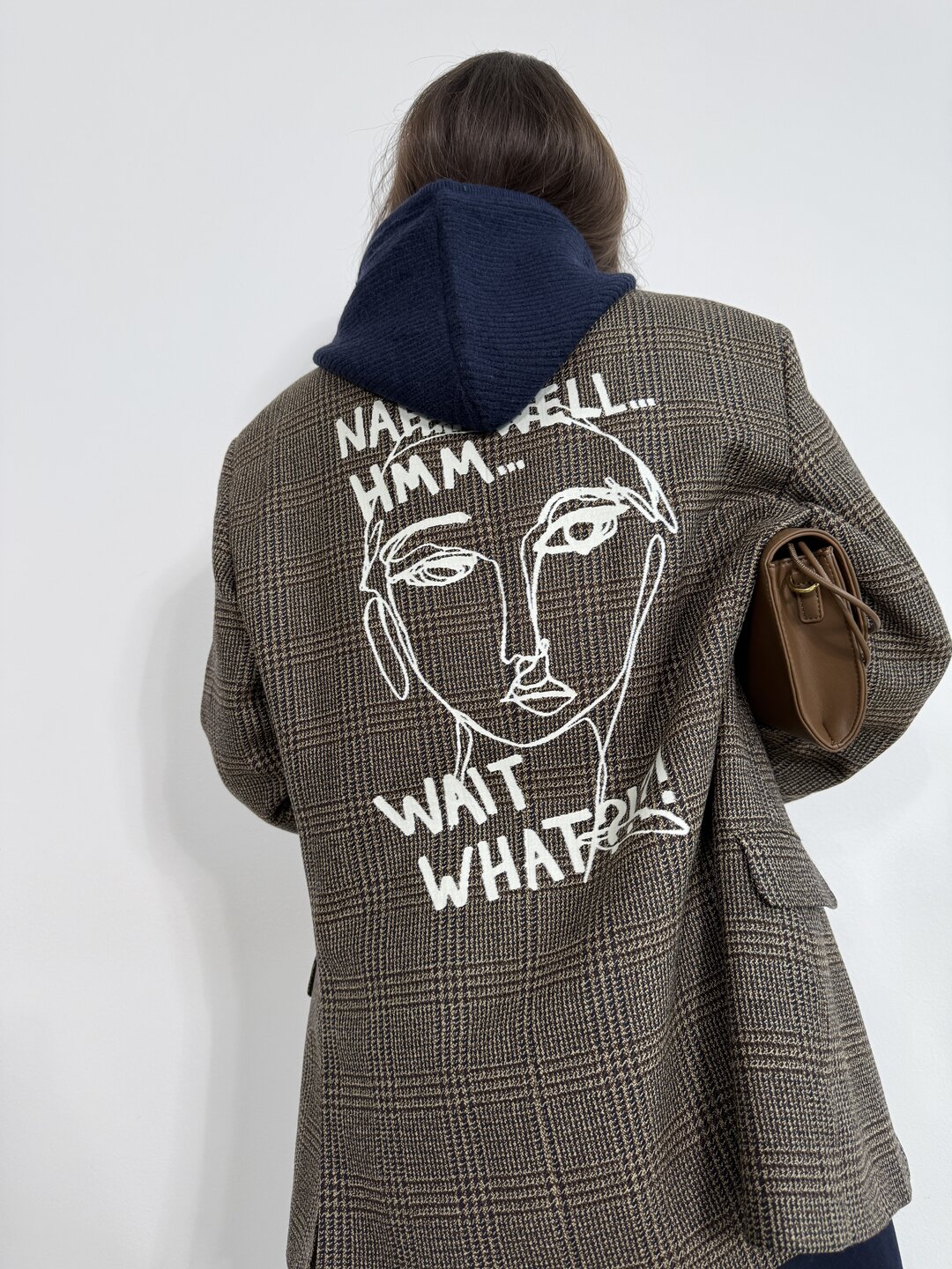 Modello sartoriale maschile vintage con stampa personalizzata gommata sul retro. Foderata