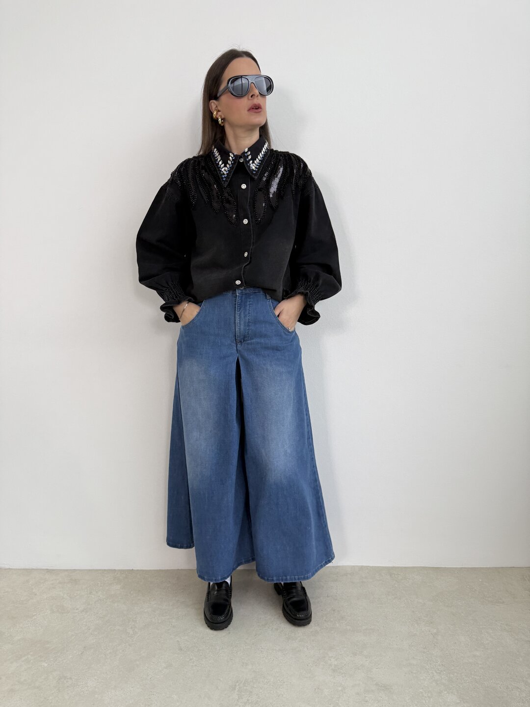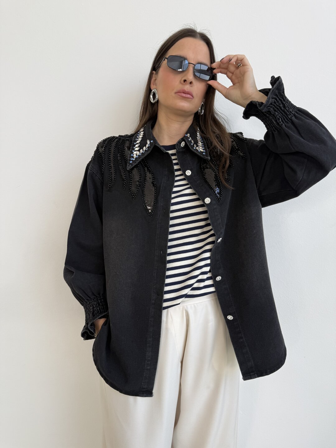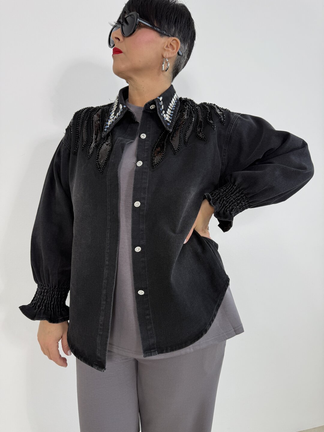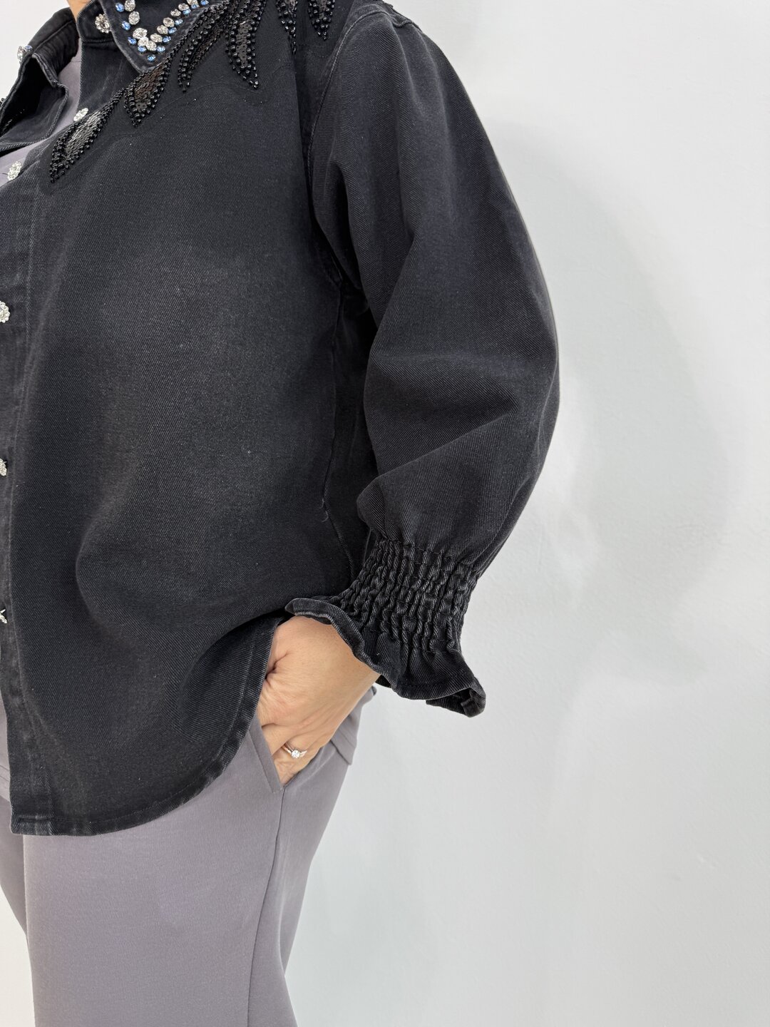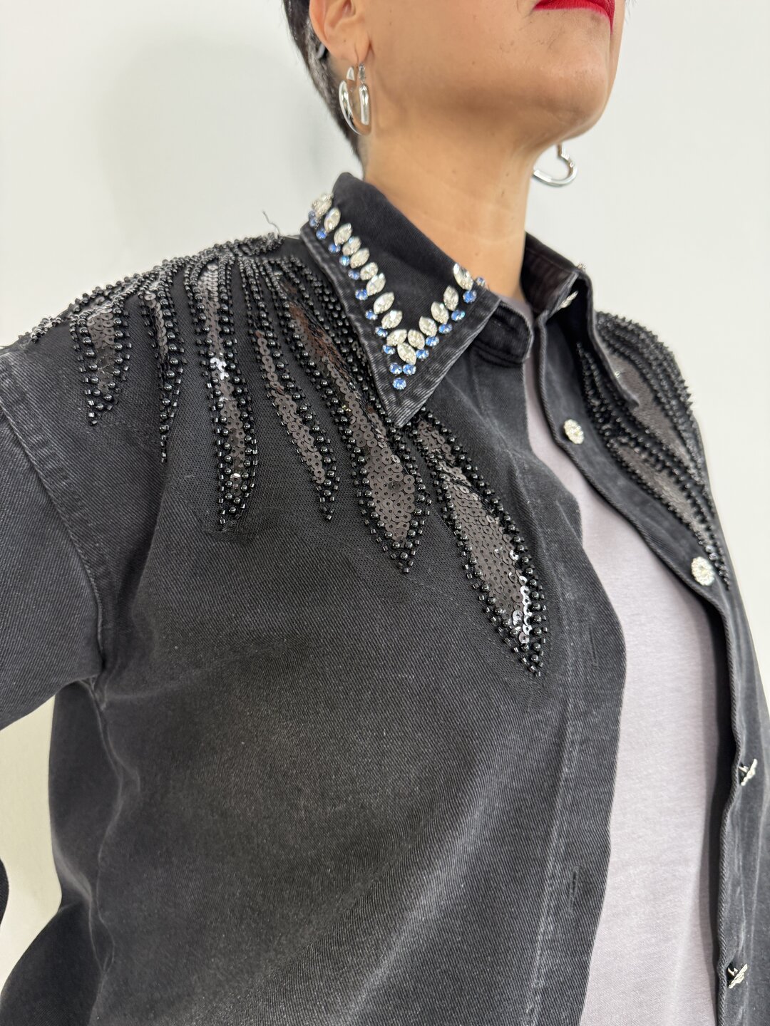 Camicia Gemme Perline nero