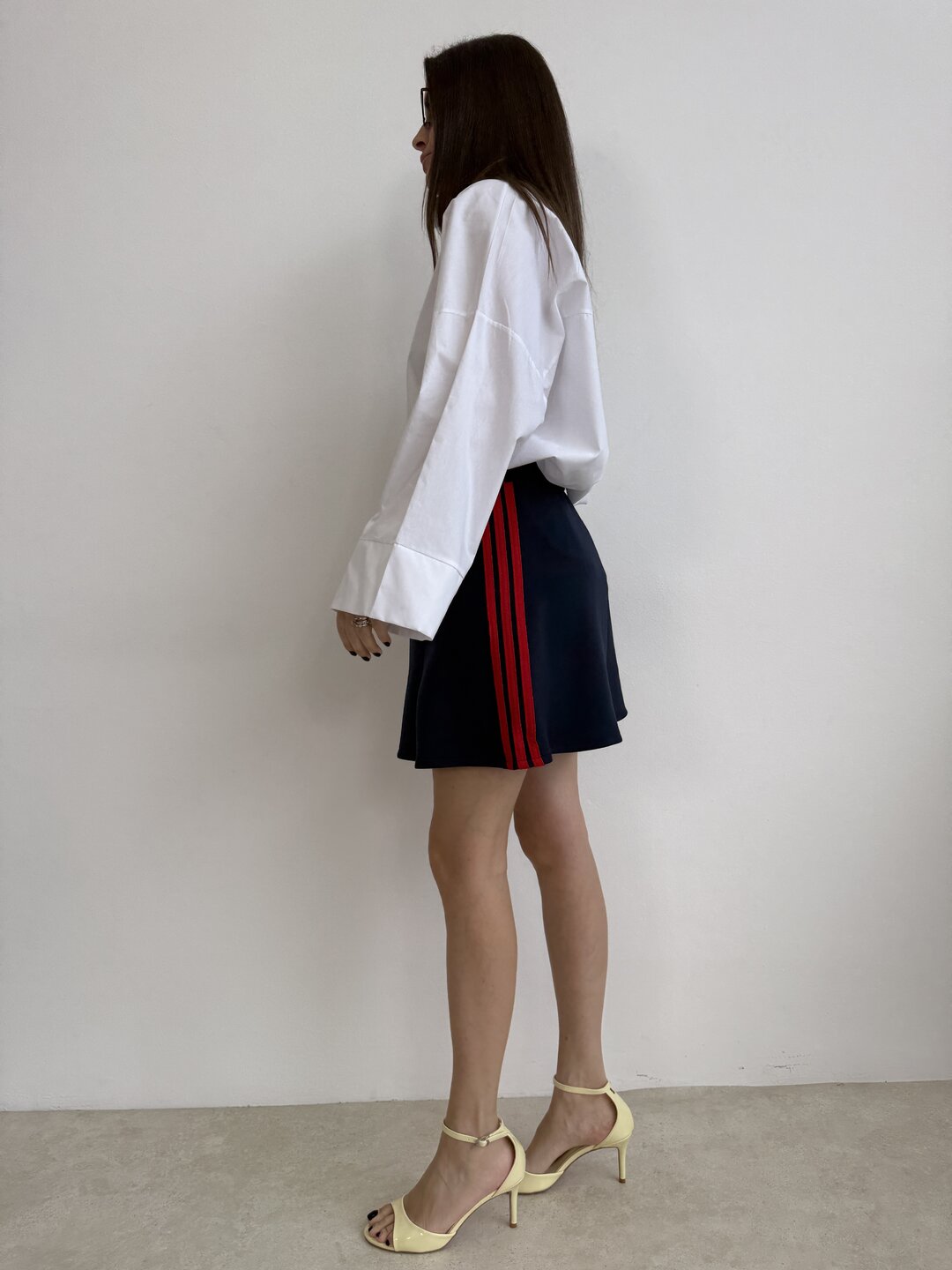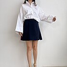 modello camicia over con spalla scesa. Più corta sul davanti e pences dietro. Manica ampia e chiusura classica con bottoncini centrali.