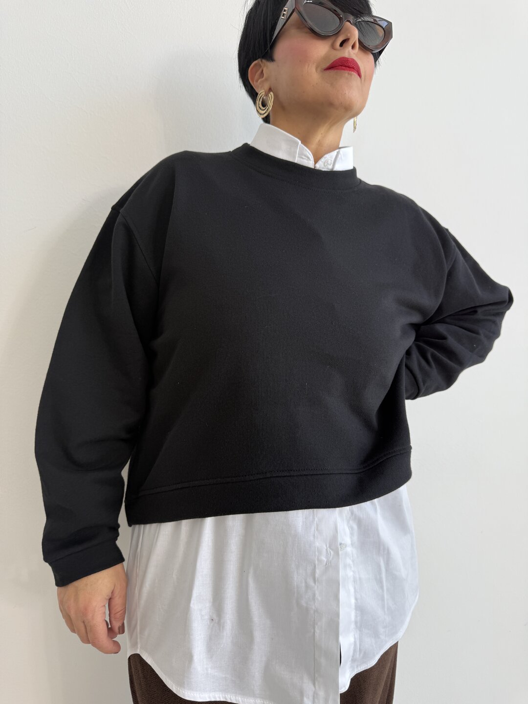 modello long con piegone sul retro. Stondata sul fianco e più lunga sul retro.