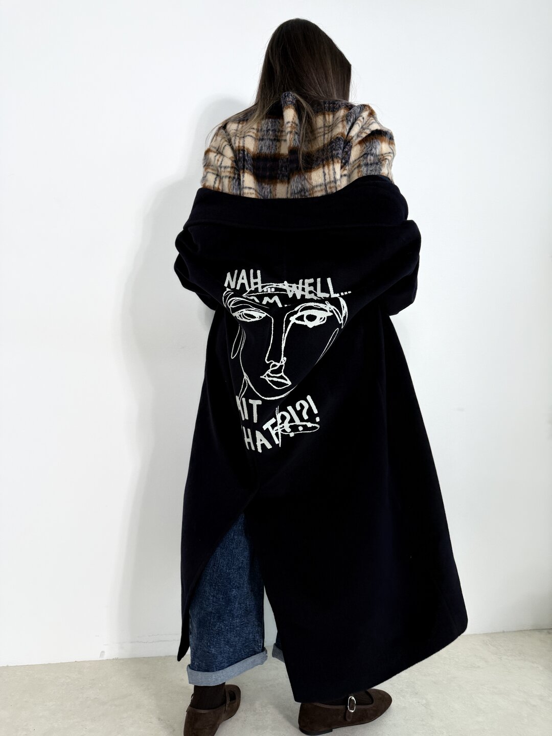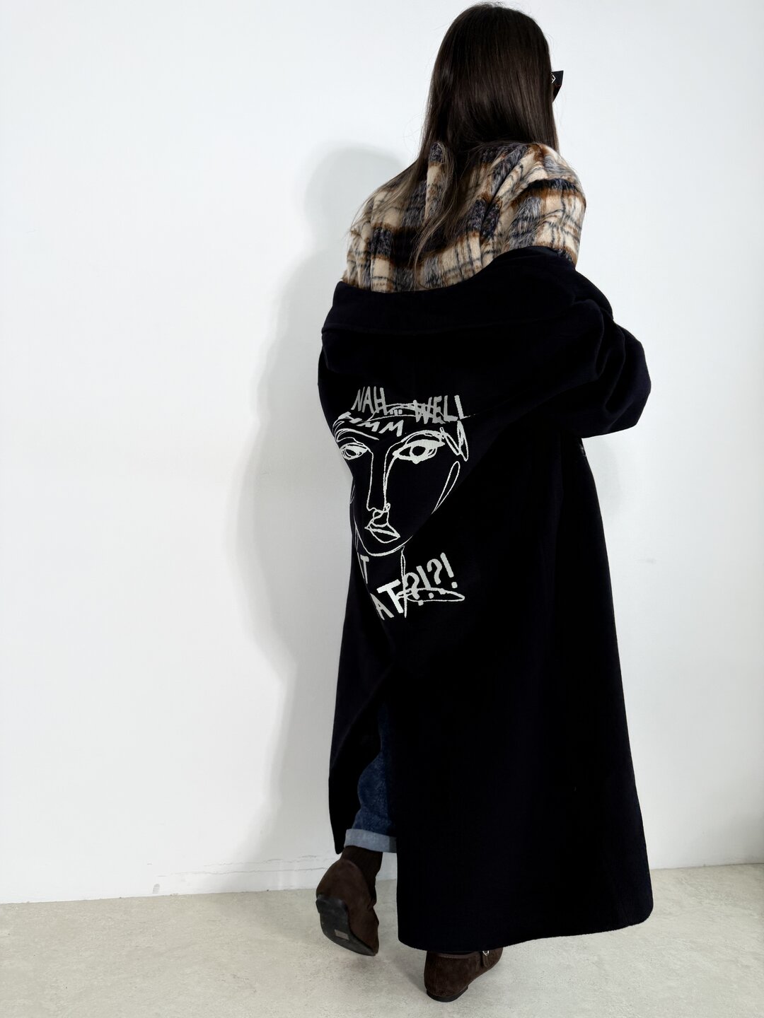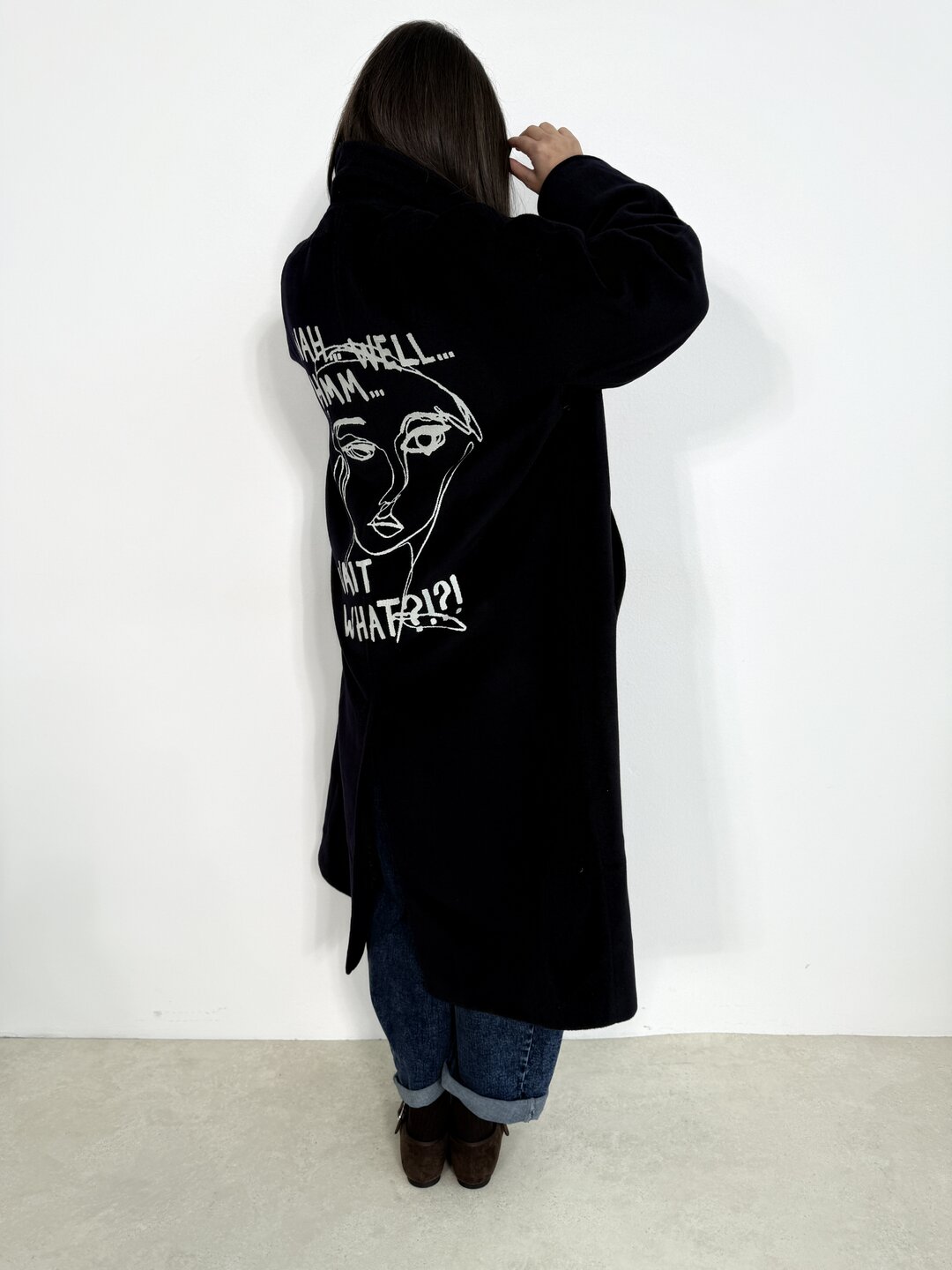 Modello sartoriale maschile vintage con stampa personalizzata gommata sul retro. Foderato.