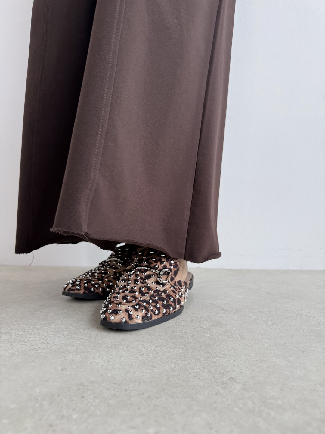 Altezza tacco 1,5 cm. Colore leopardato con bulloni e fibbia argento.