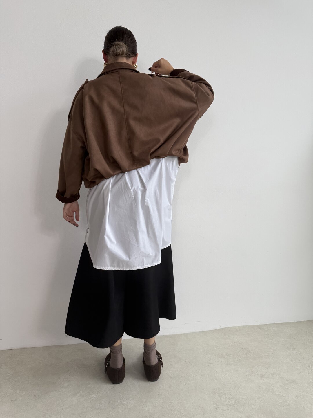- modello a giacca con chiusura zip e fondo ripreso. Fascia dettaglio sopra la spalla. Sfoderato.