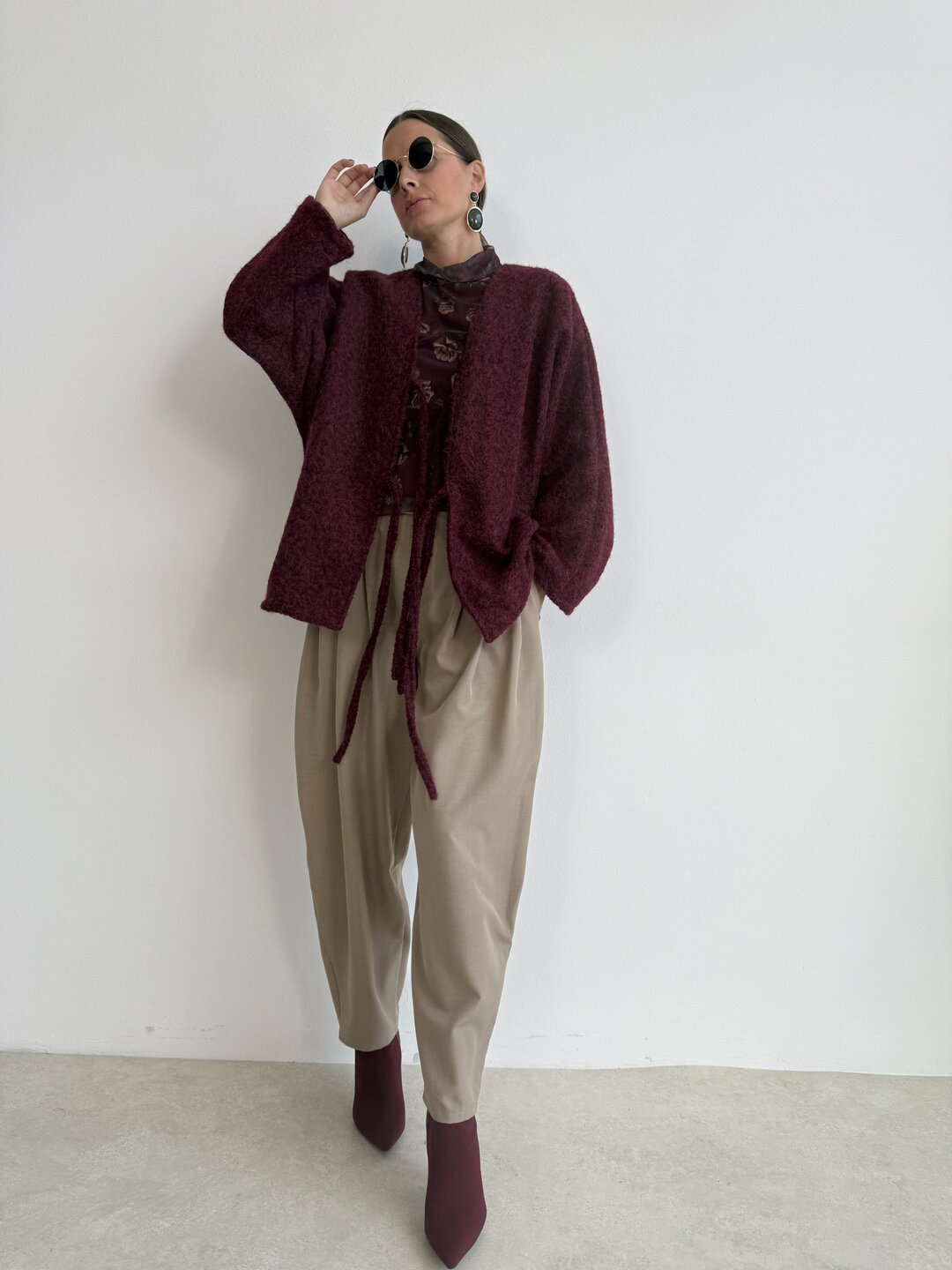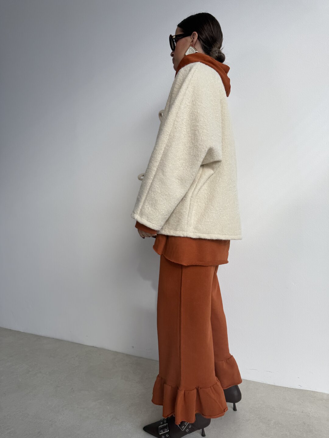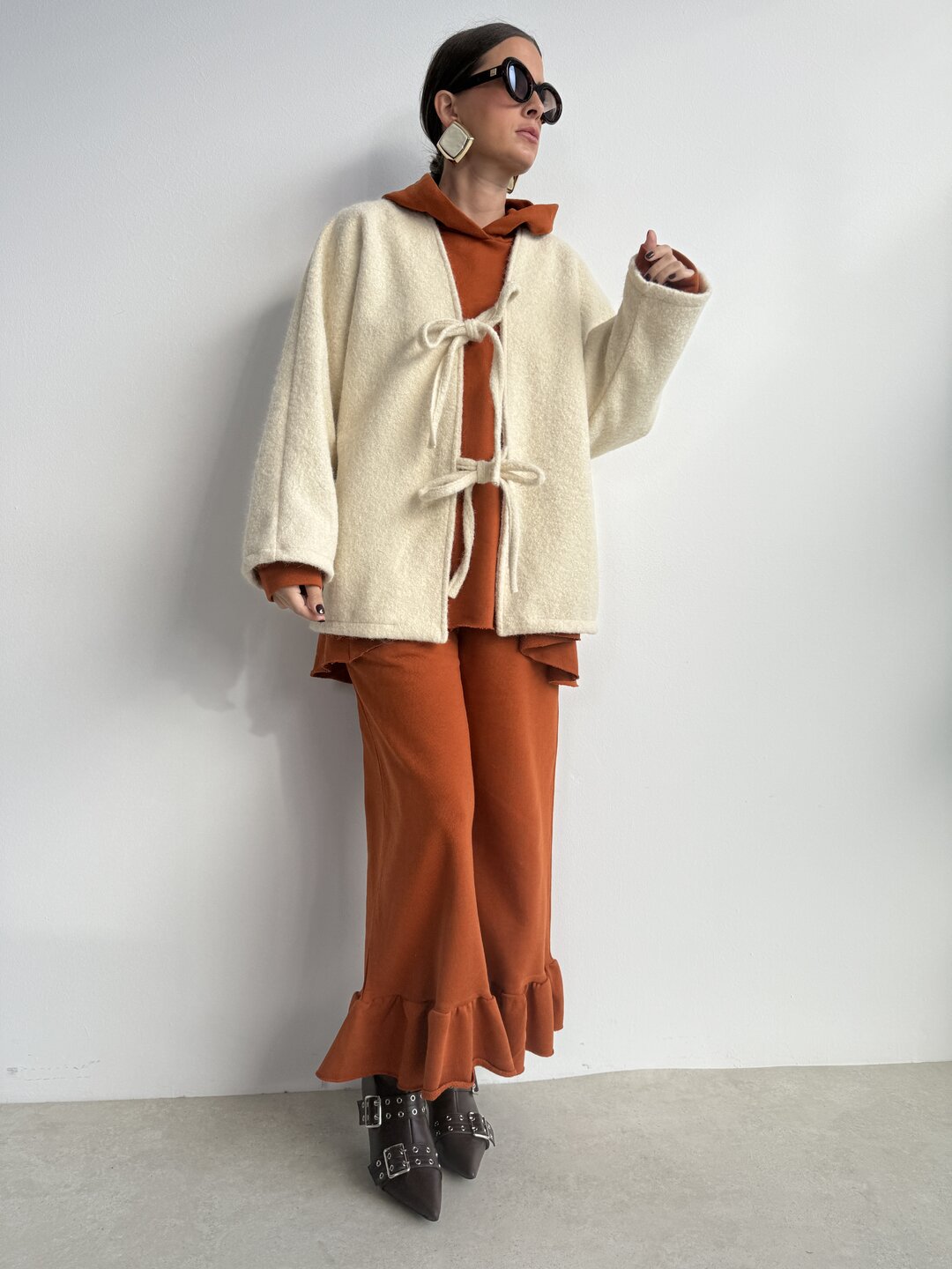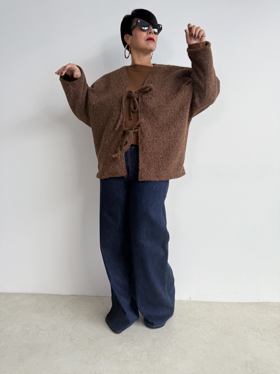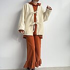 Modello a giacca con allacciatura laccetto. Senza taglio spalla.