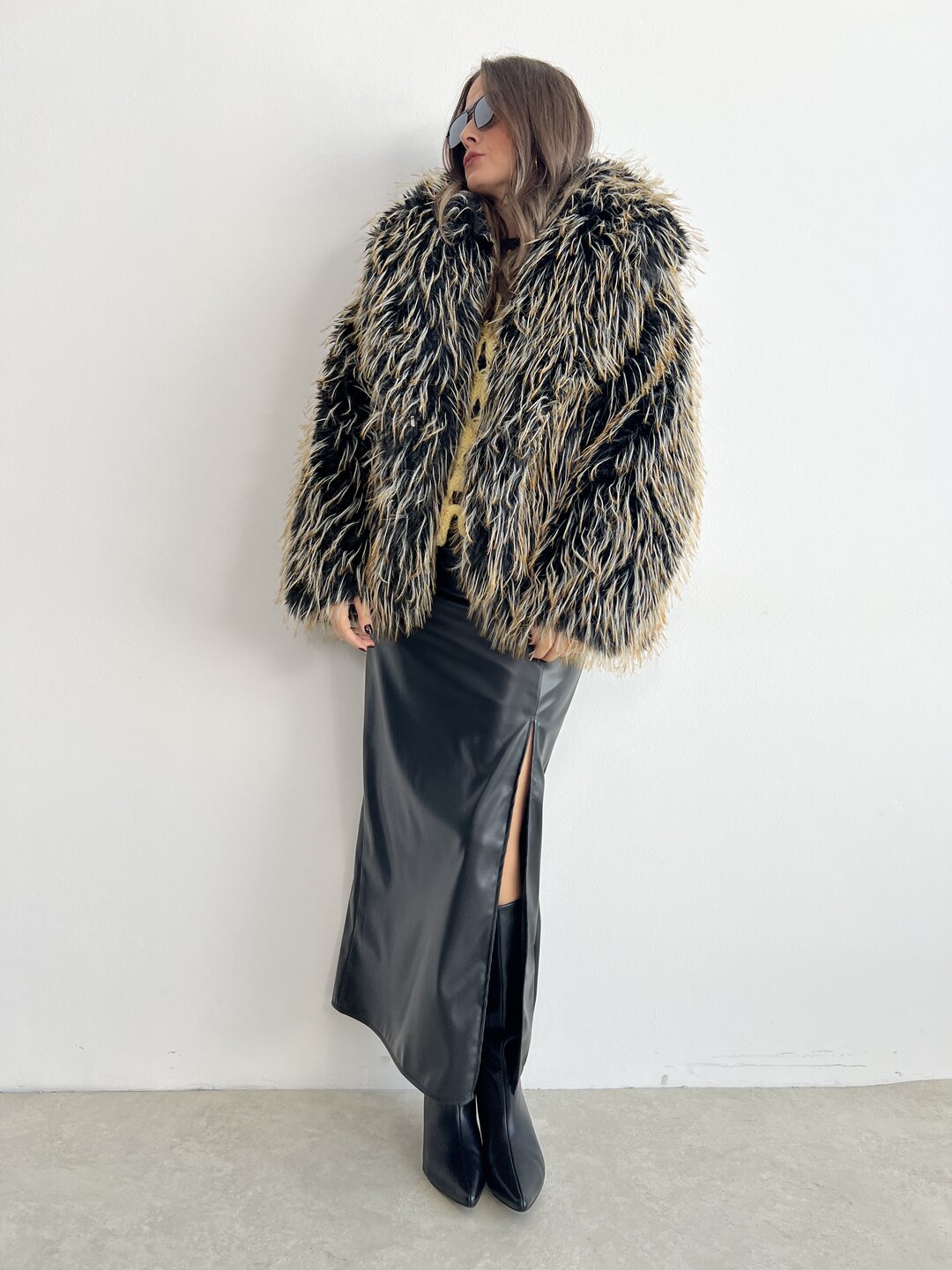 Modello in pelliccia sintetico foderato al suo interno. Effetto volume.