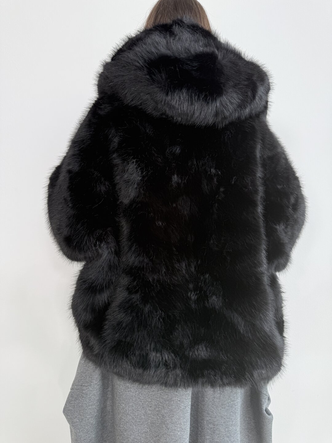 Modello in pelliccia sintetico foderato al suo interno. Effetto volume. Stondata sul davanti.