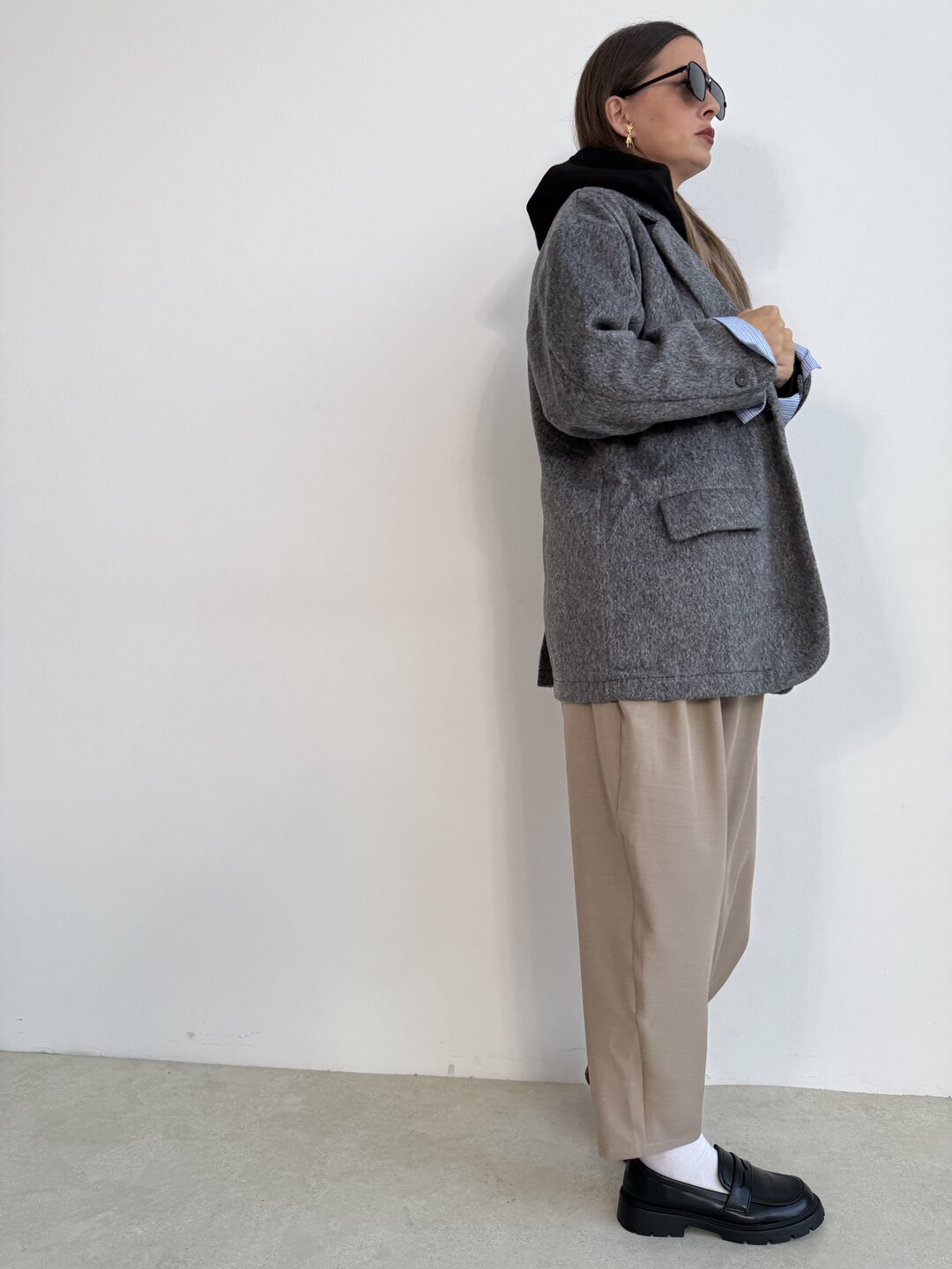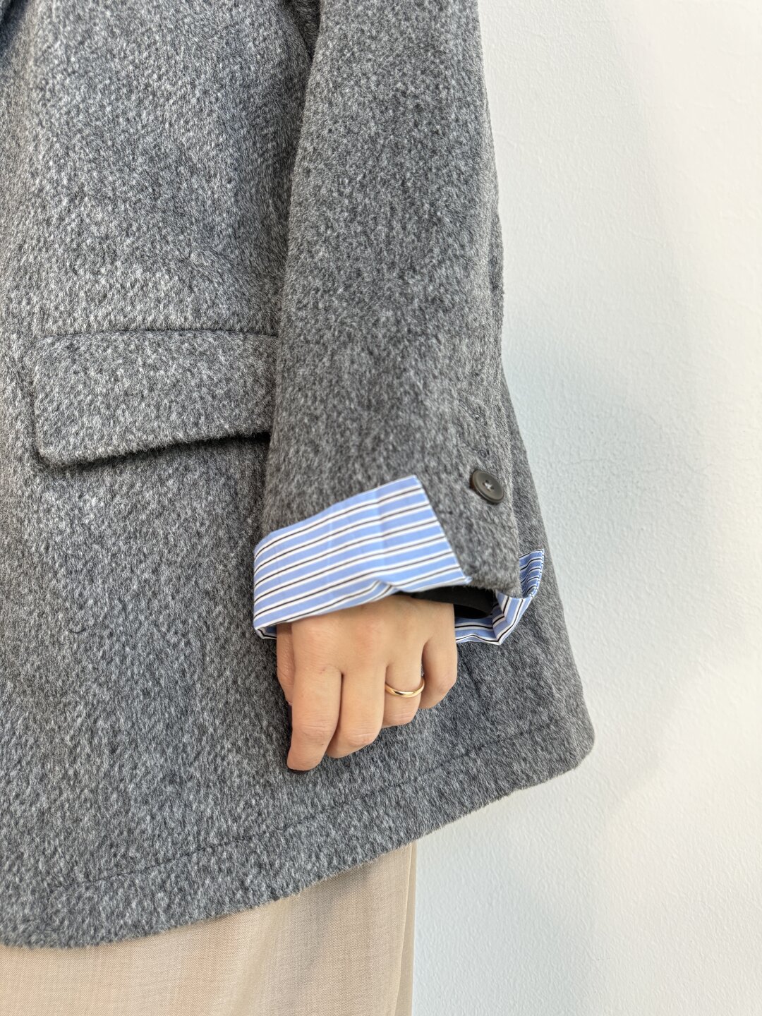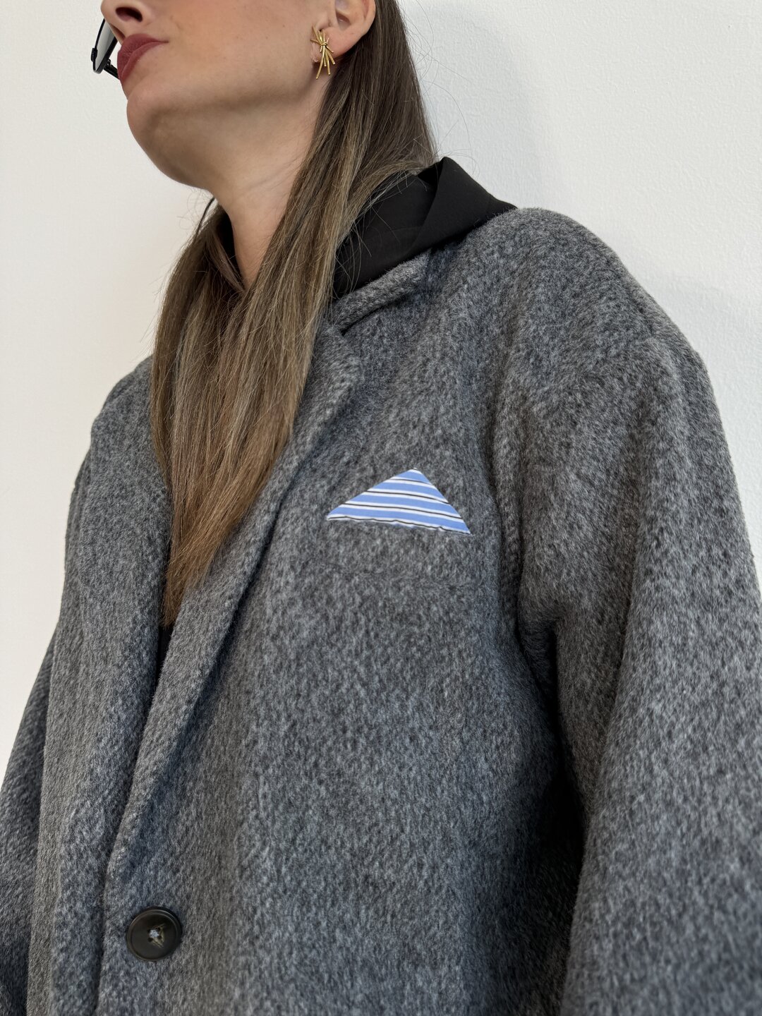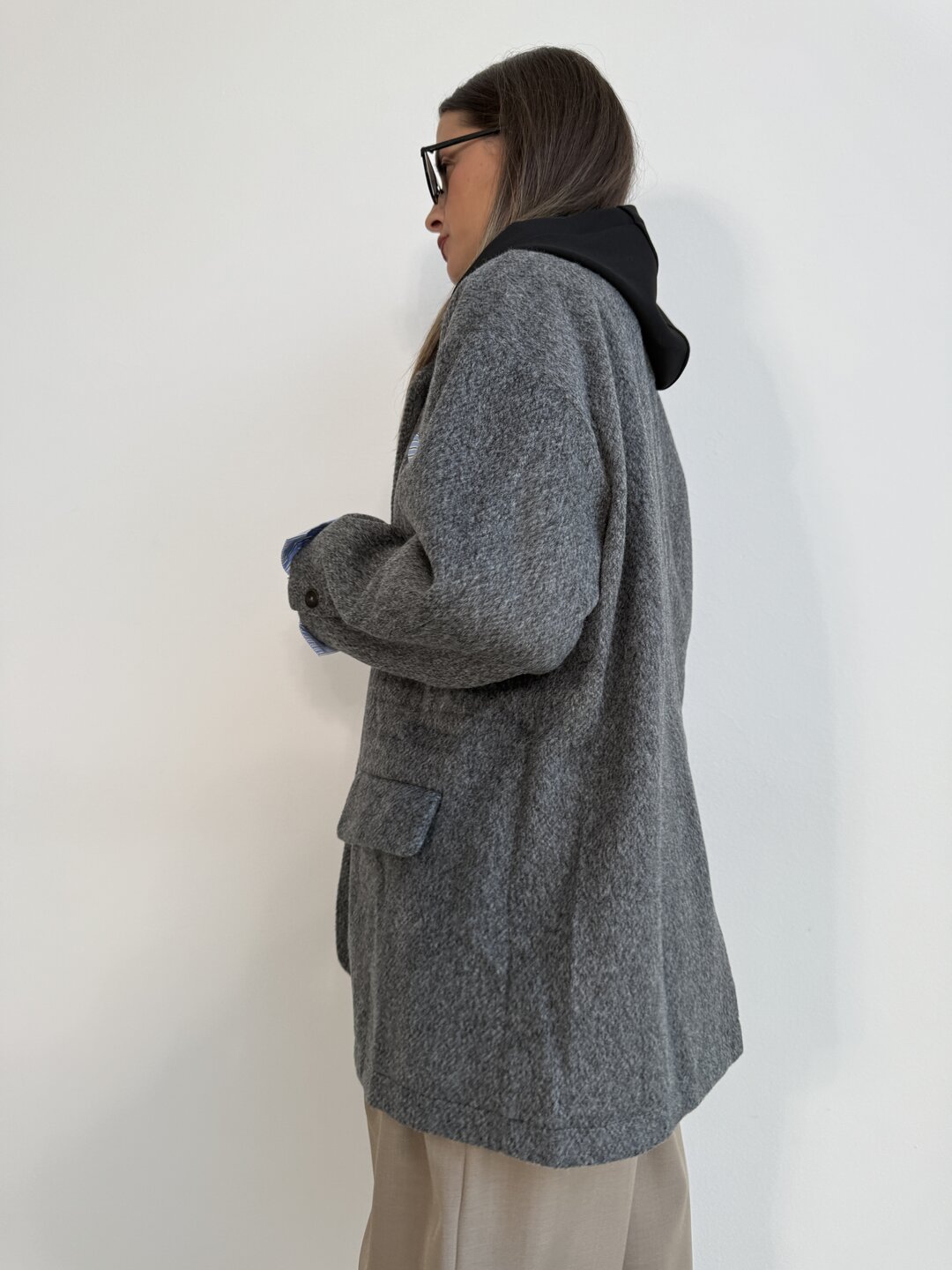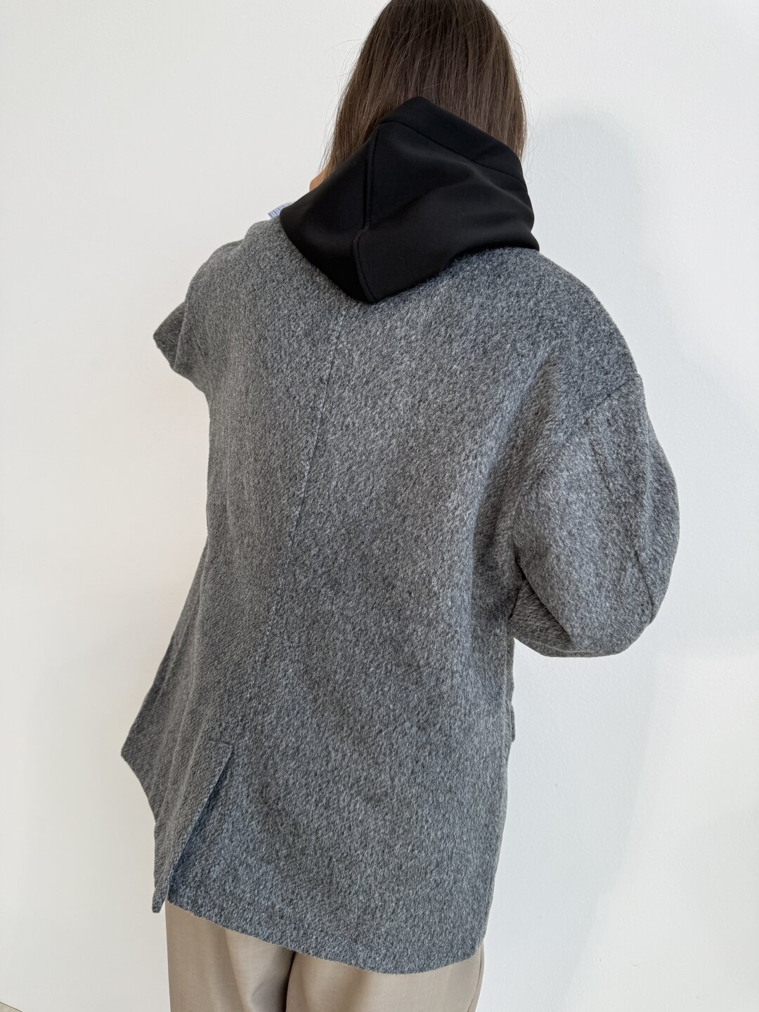 Modello over dritto con spallina. Tasca a pattina sul davanti. Allacciatura a 1 bottone. Fondo manica con dettaglio posino camicia fisso.