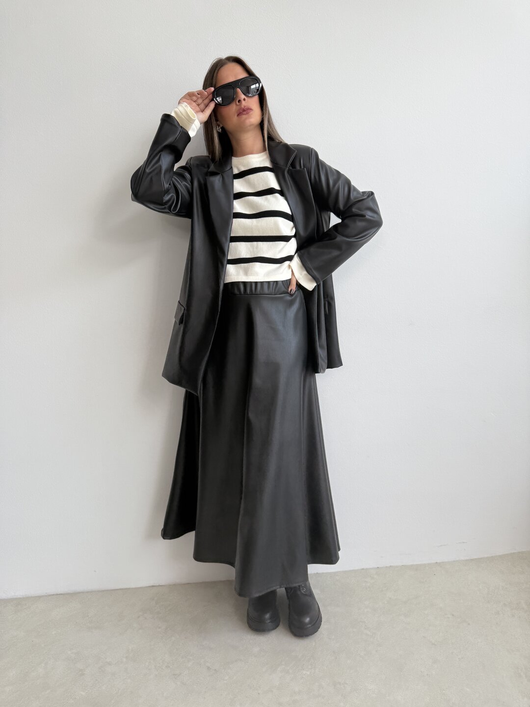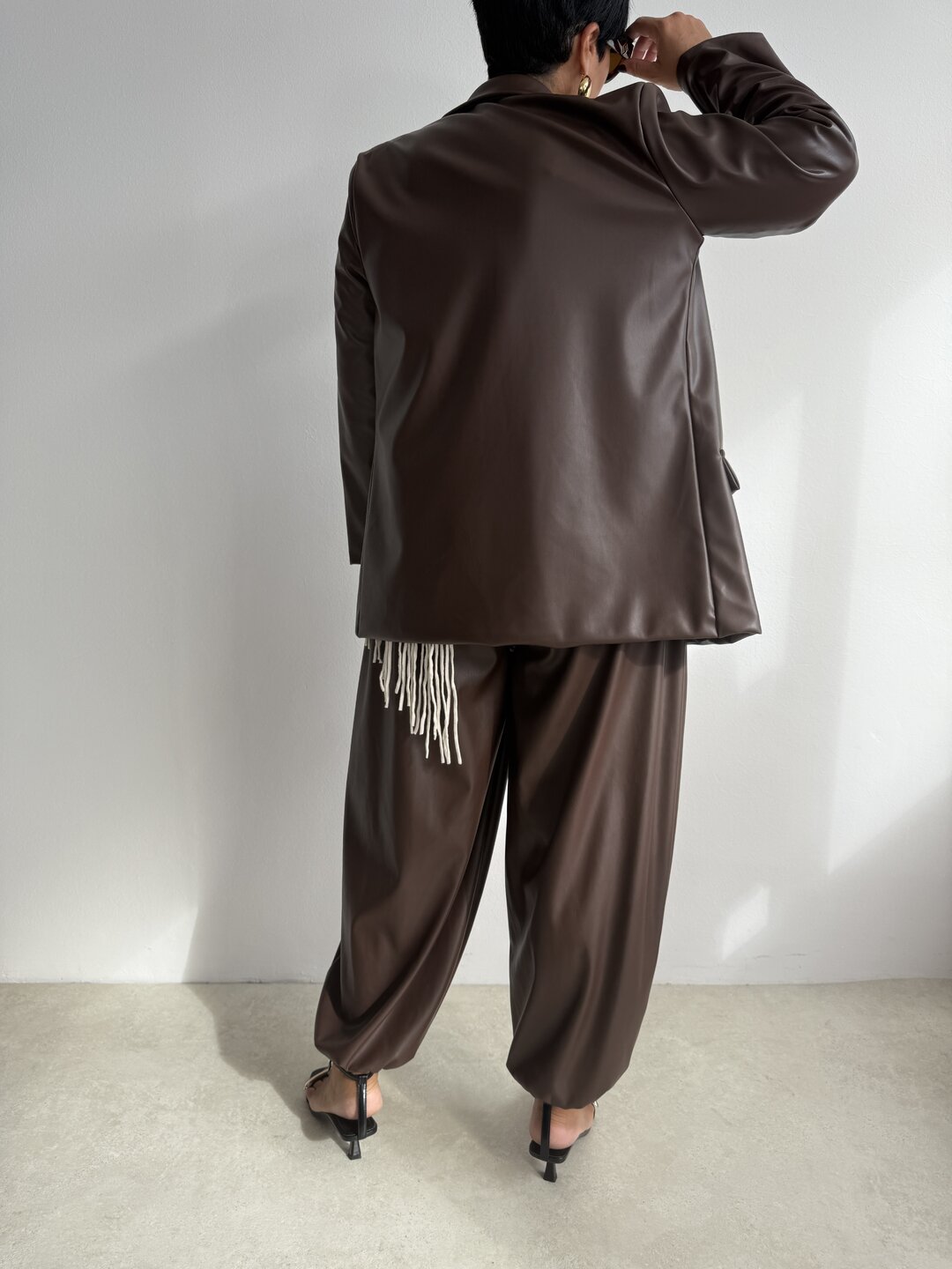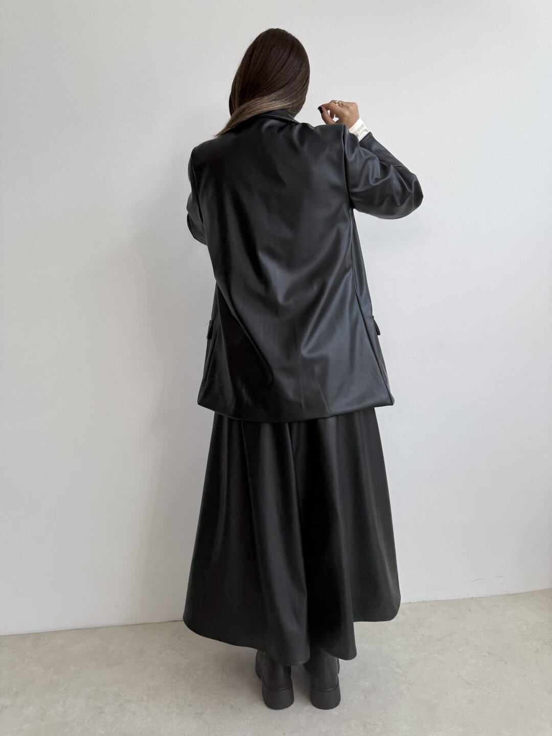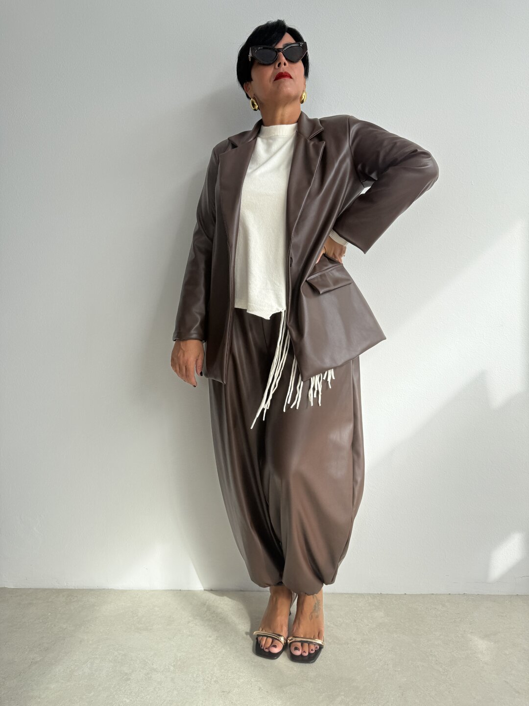 - giacca strutturata con spallina effetto eco leather (no lucida). Allacciatura 1 bottone. Finta tasca a pattina.