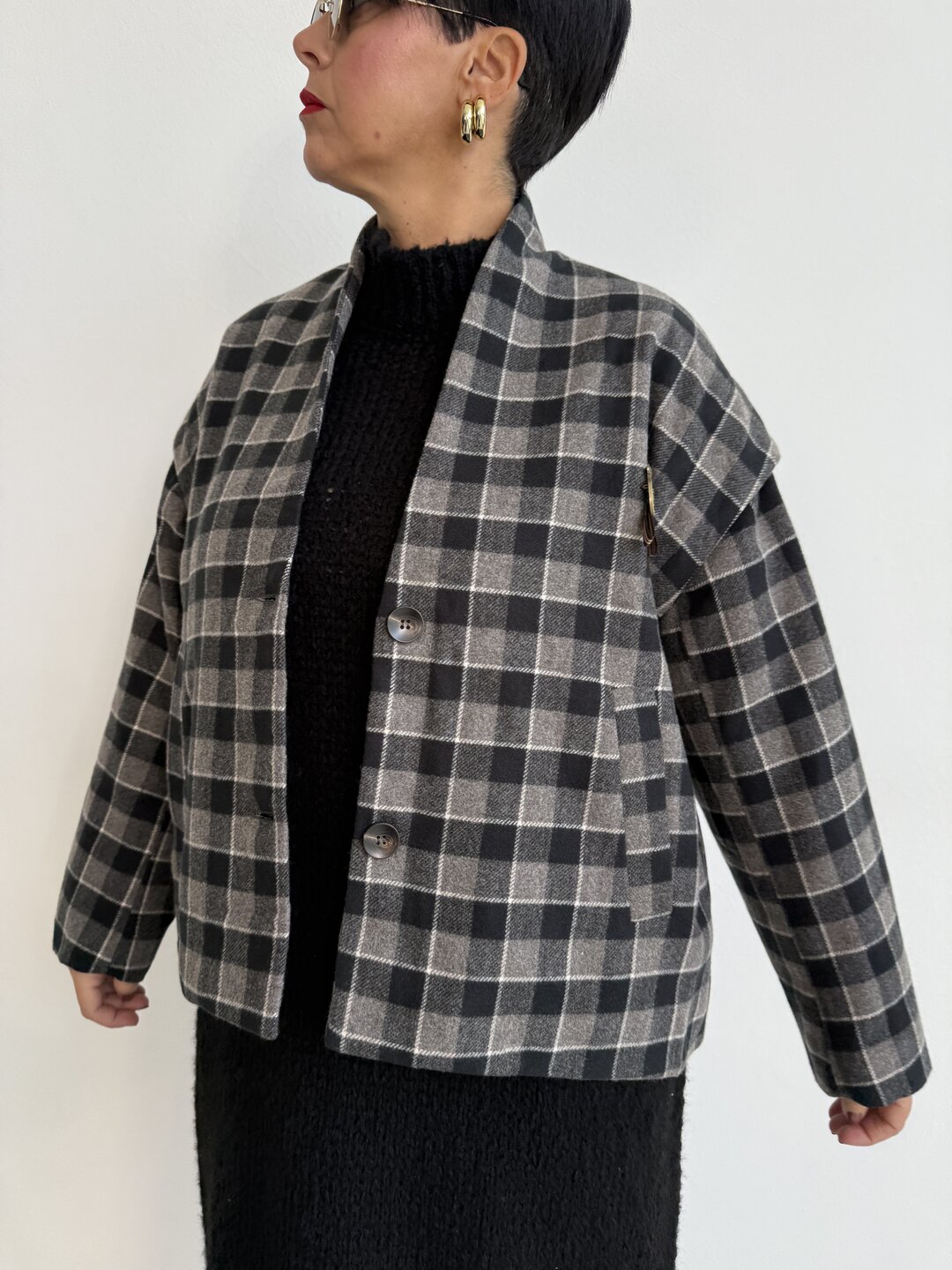 • giacca foderata modello spalla scesa con tasche sul davanti e bottoni