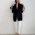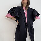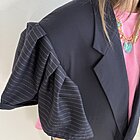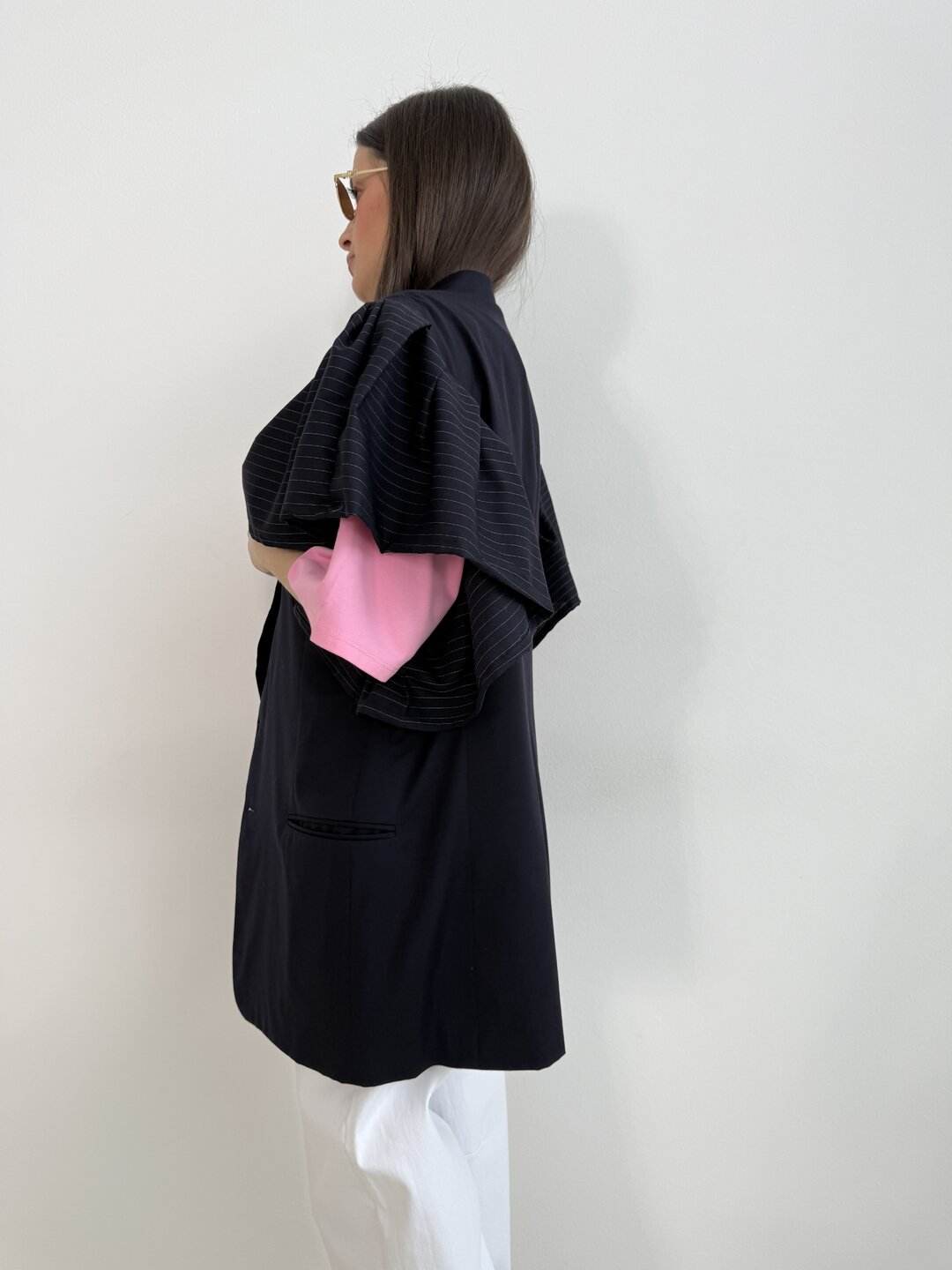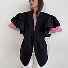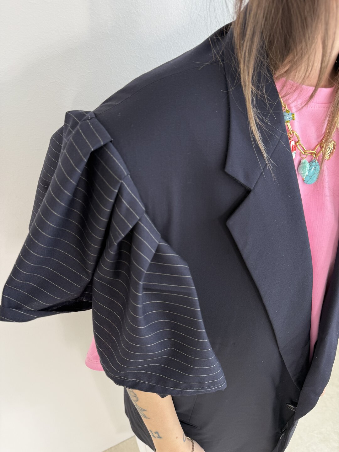 Modello sartoriale maschile vintage. Foderata con riporto manica a sbuffo. Allacciatura con 2 bottoni.