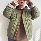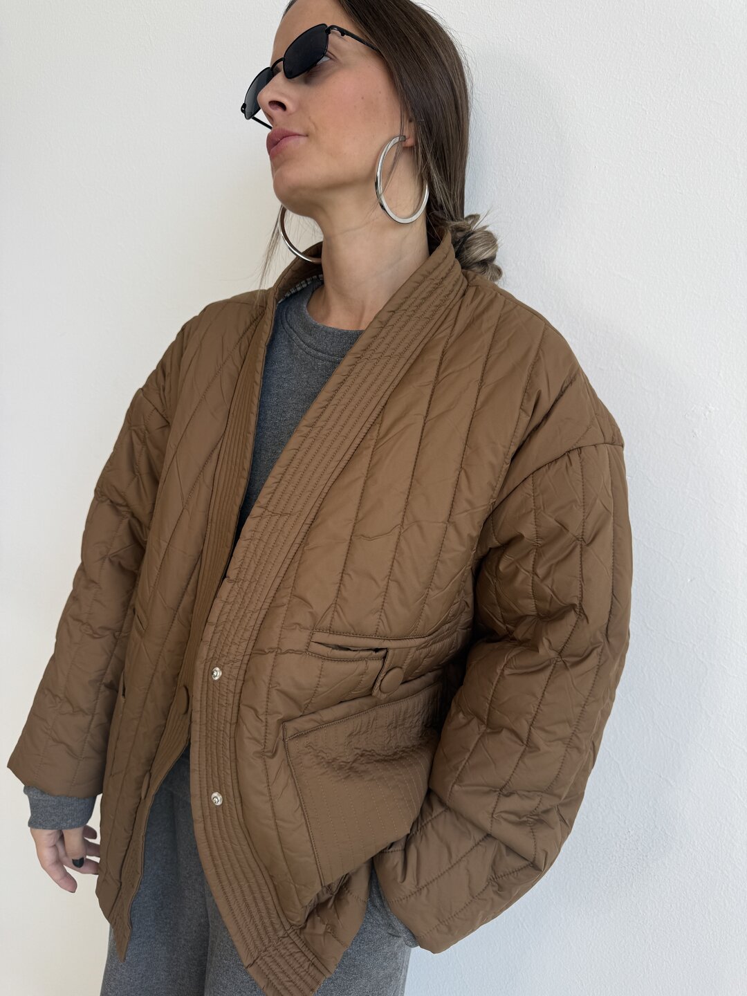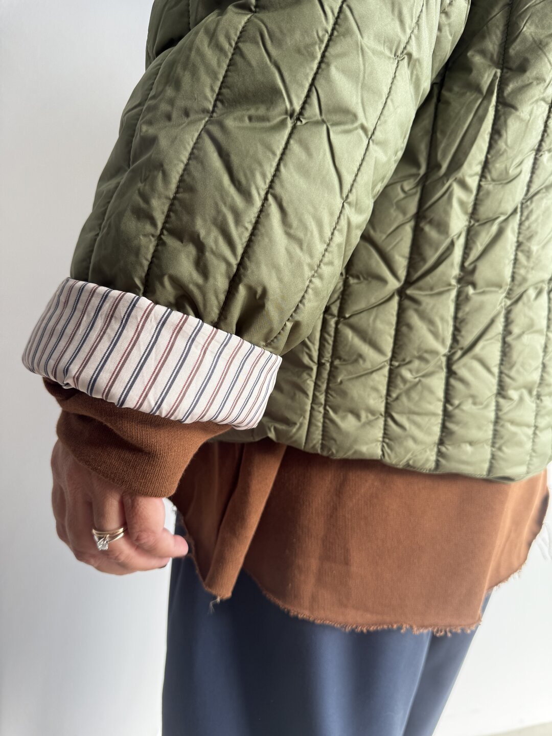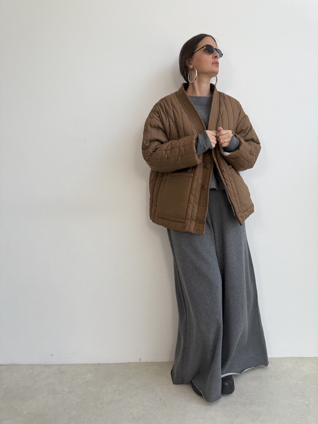 - modello dritto trapuntato. Allacciatura con bottone. Trapunto verticale. Tasche a toppa sul davanti.