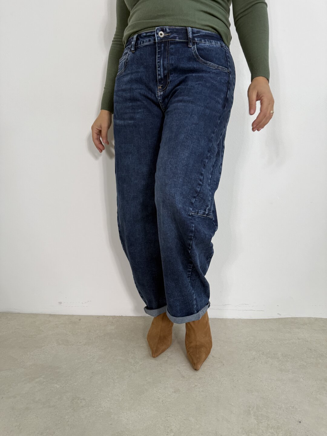• modello ad ovetto molto elasticizzato. Cuciture lungo la gamba. Chiusura zip bottone con 5 tasche. Forma della gamba a banana