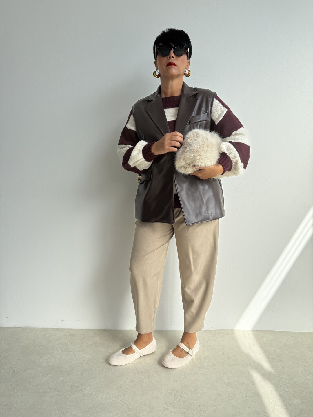 Gilet ecopelle cintura BIRKIN - cioccolato