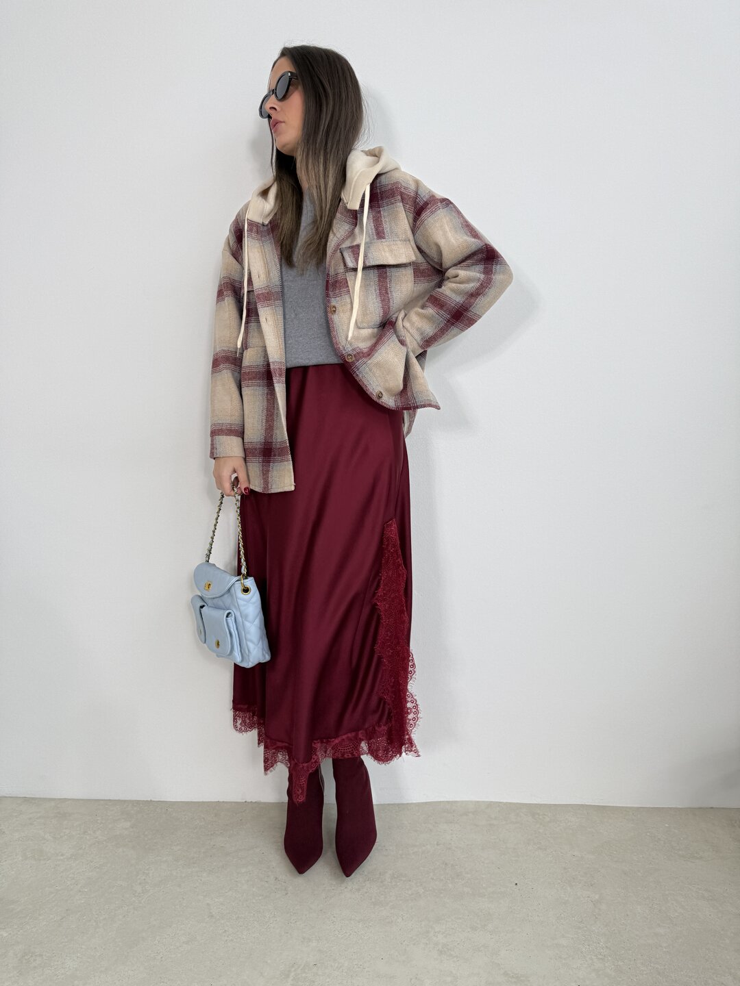 Gonna Lisa satin pizzo - Bordeaux  29,00