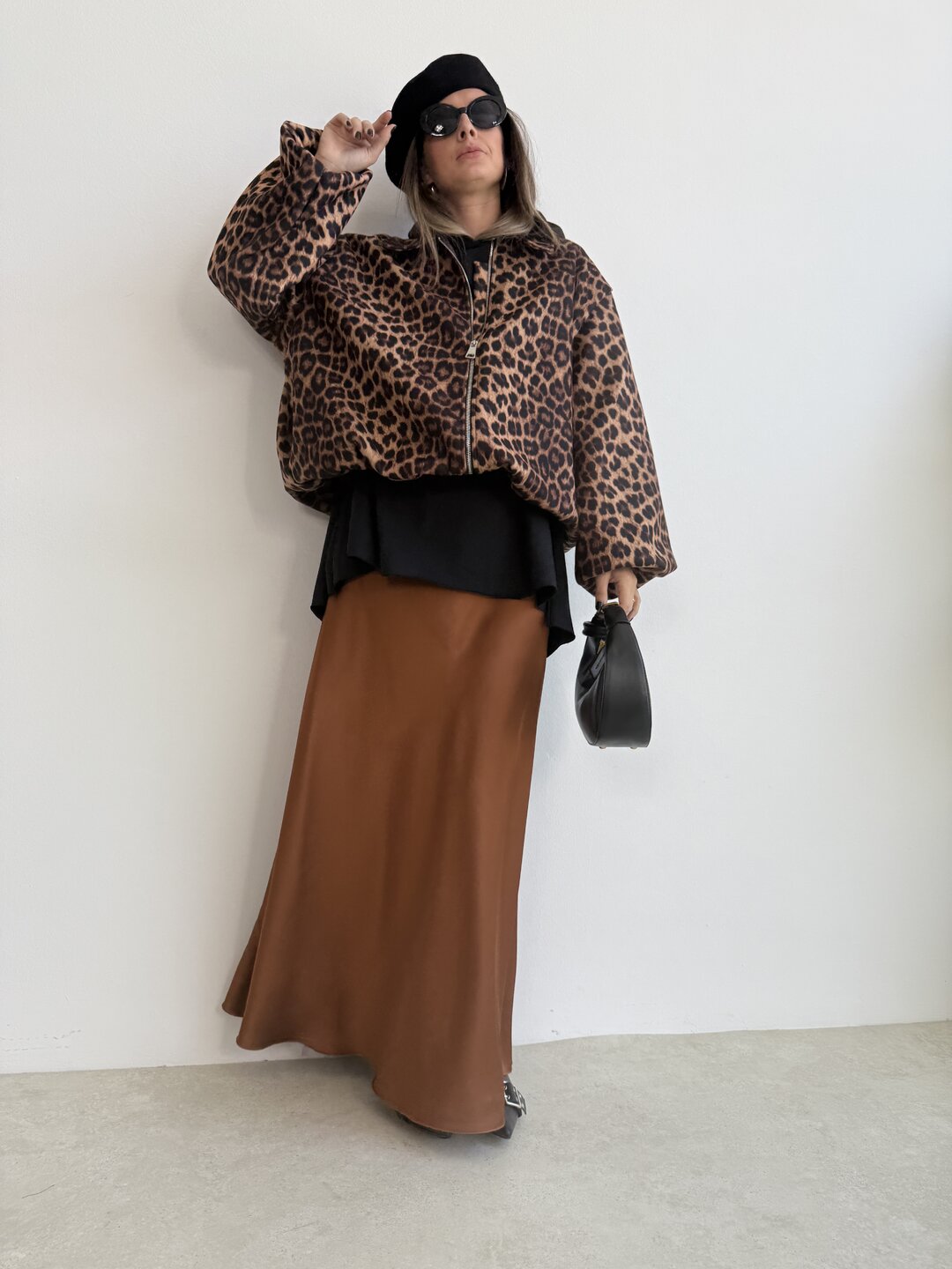 Gonna lunga campana satin - ruggine