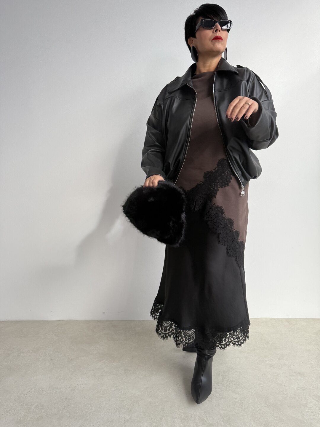 Longuette pizzo satin + 𝚌𝚘𝚕𝚘𝚛𝚒 - Nero