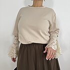 Modello t-shirt over a girocollo. Manica lunga in pizzo con fondo a campana.