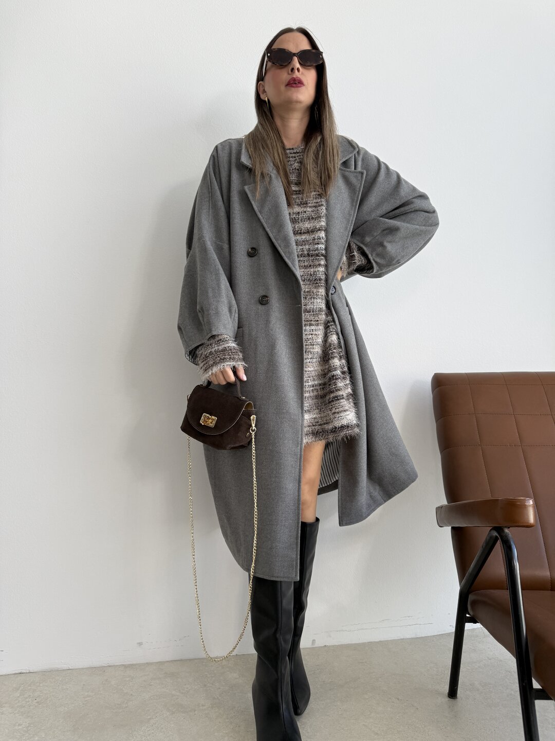Modello ampio simile a un dress. Scollo a giro con dettaglio nel tessuto.
