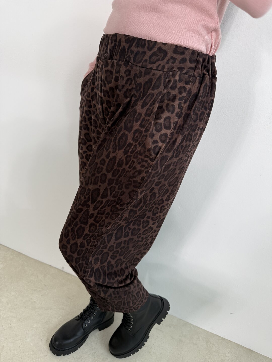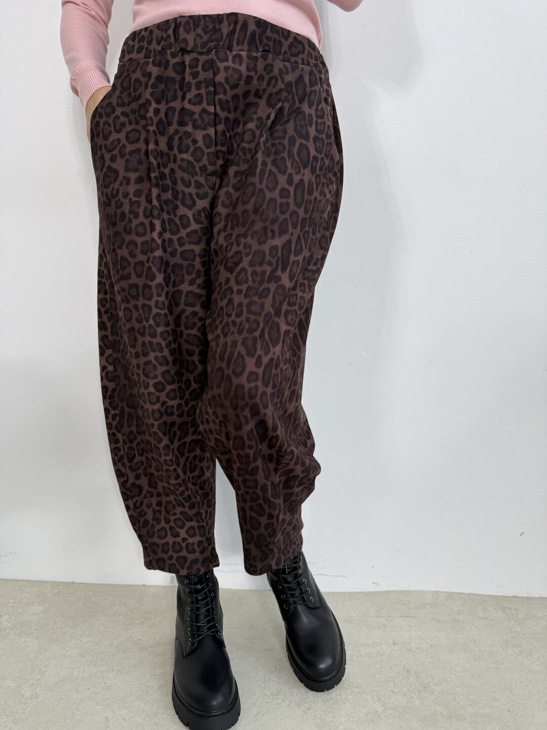 Modello ovetto con elastico in vita, tasche laterali e pinces, finta chiusura. Tessuto super comfort.