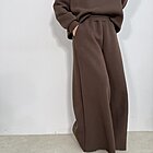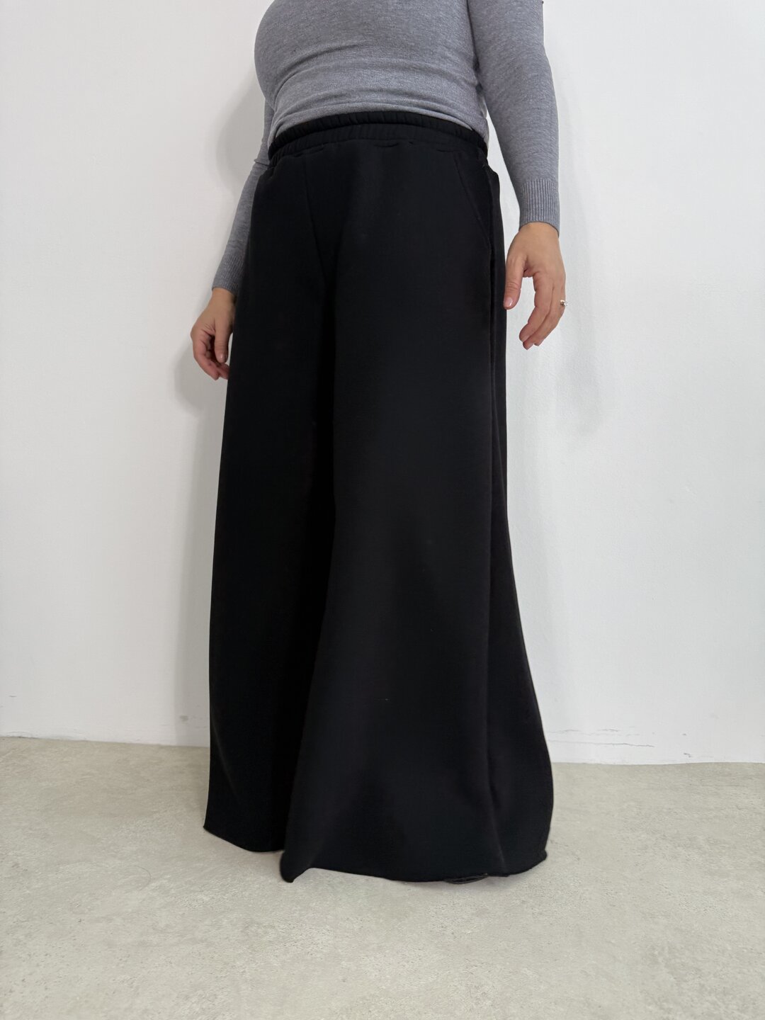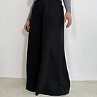 modello tuta a palazzo con elastico in vita, tasche laterali, fondo taglio vivo.