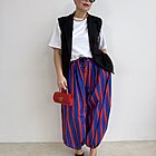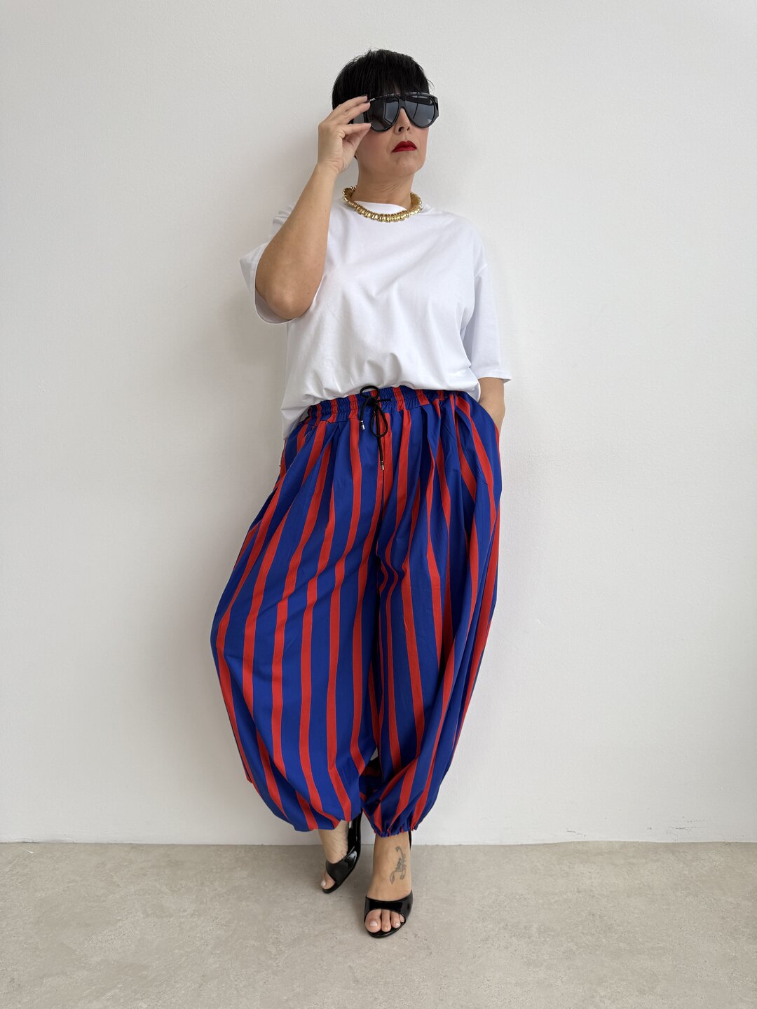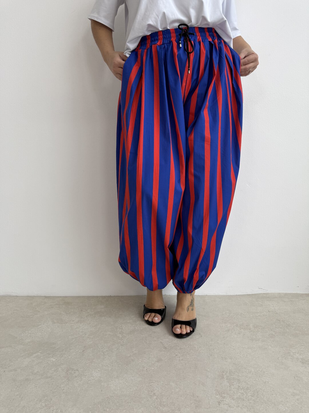 pantalone modello palloncino con molla in vita e coulisse. Tasche laterali e polsino sul fondo