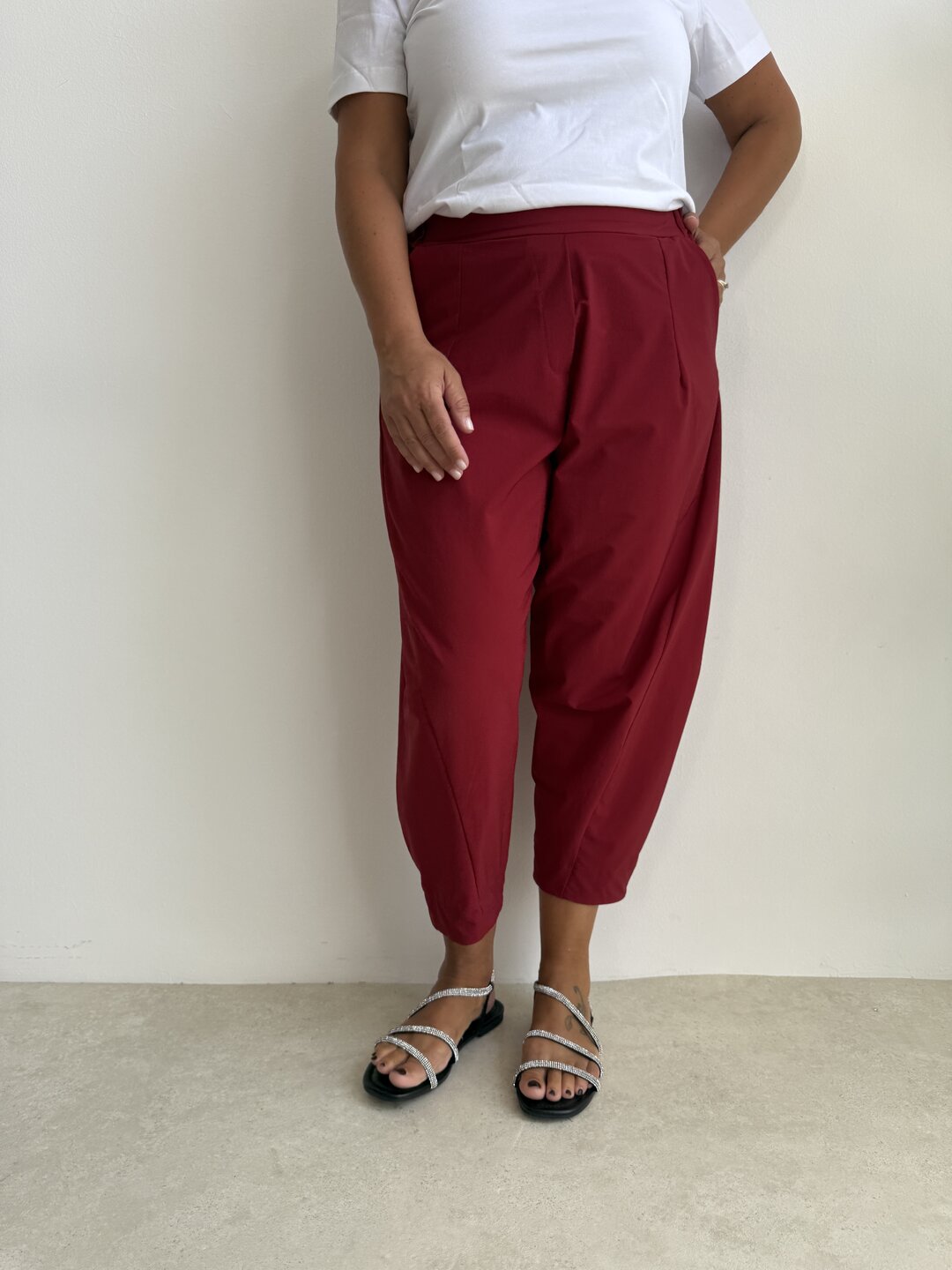 • struttura a palloncino con finta pattina zip. Tasche laterali. Tasche a filo sul retro. Cucitura sulla gambe trasversale per linea ovetto.
