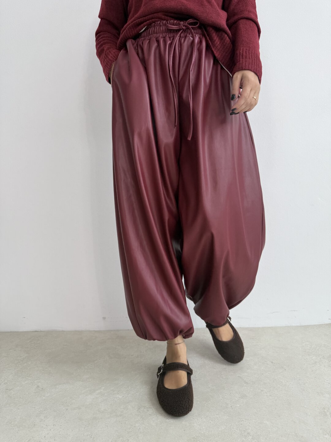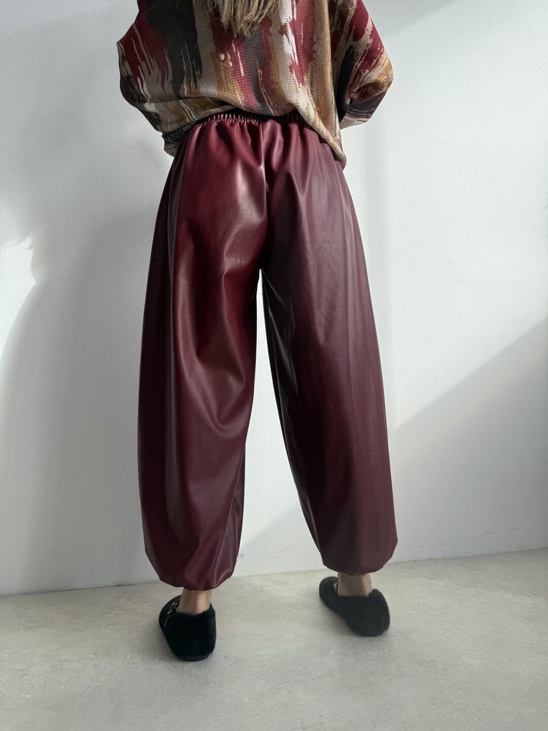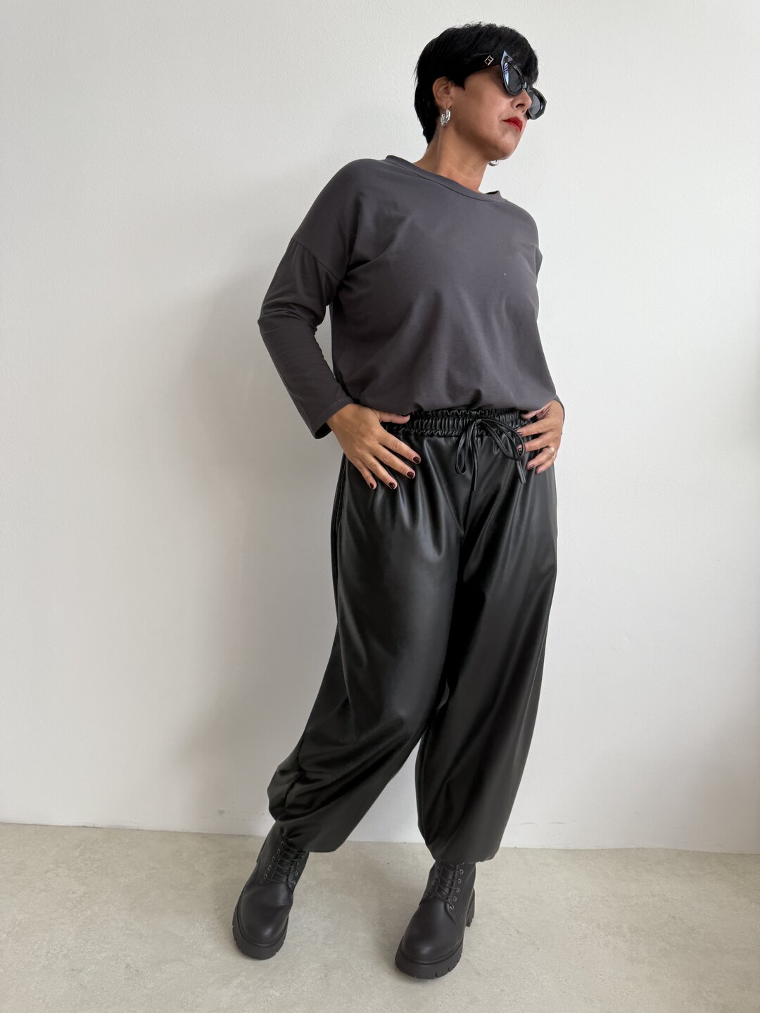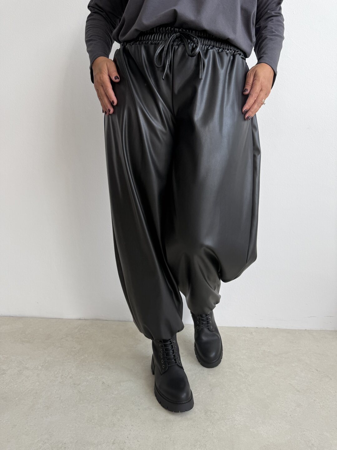 - pantalone modello palloncino con molla in vita e coulisse. Tasche laterali e polsino sul fondo