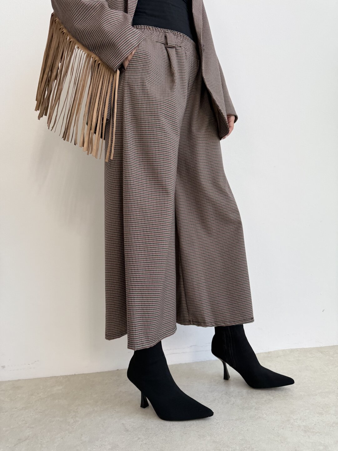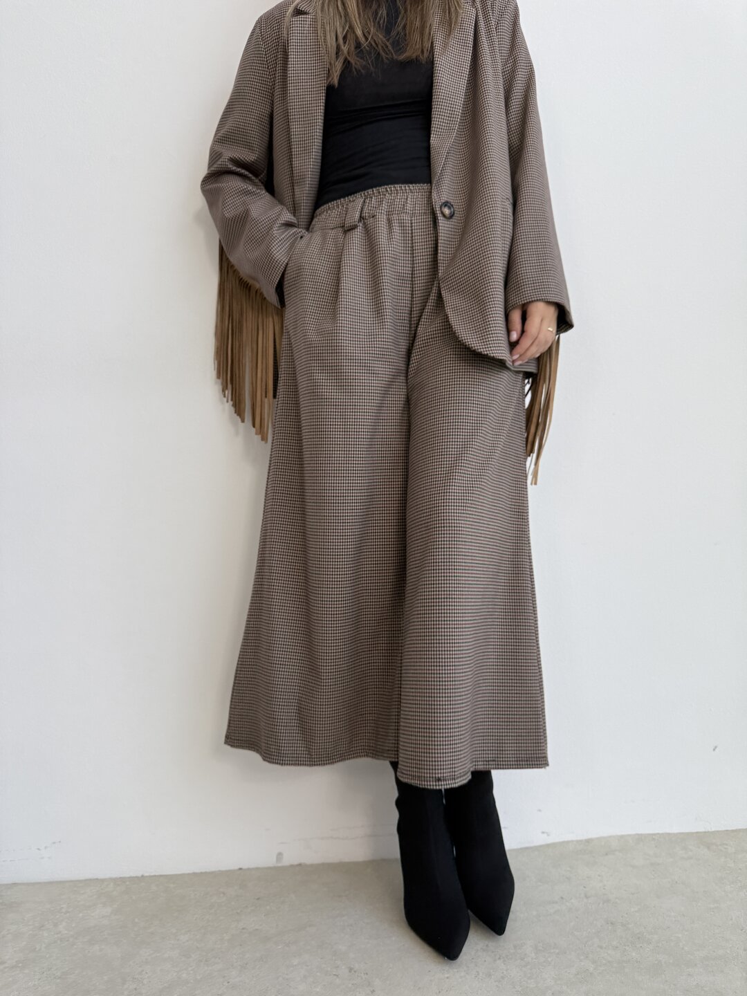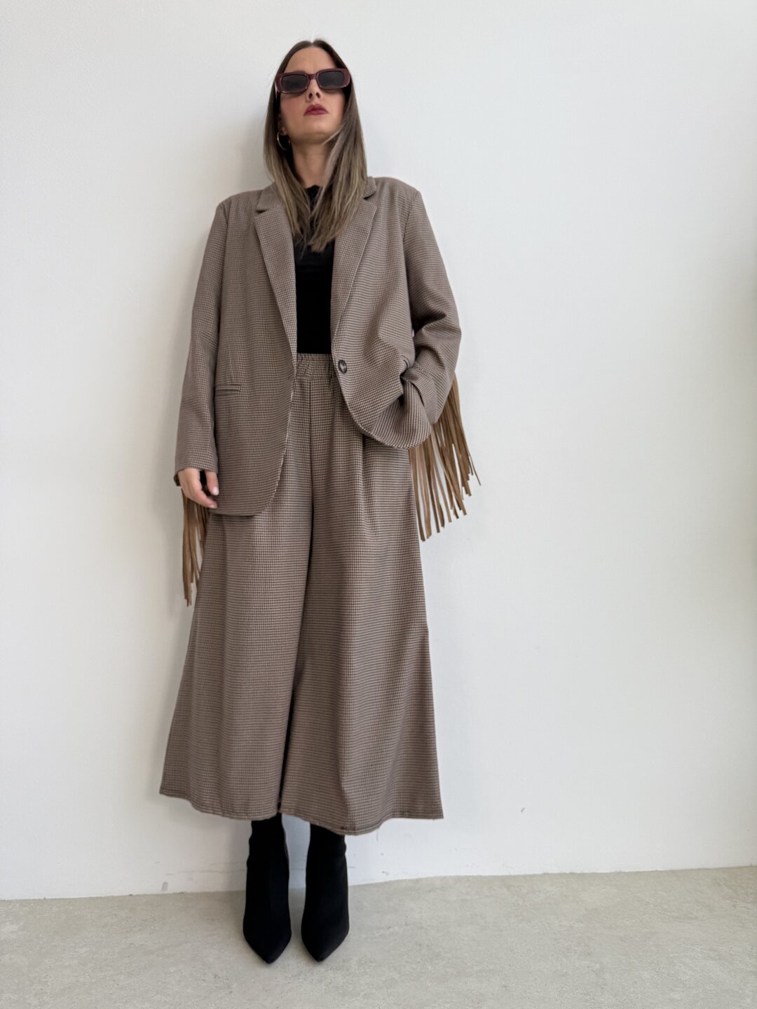 Colore in fantasia pied de poule nel colore cammello – nero – bordeaux