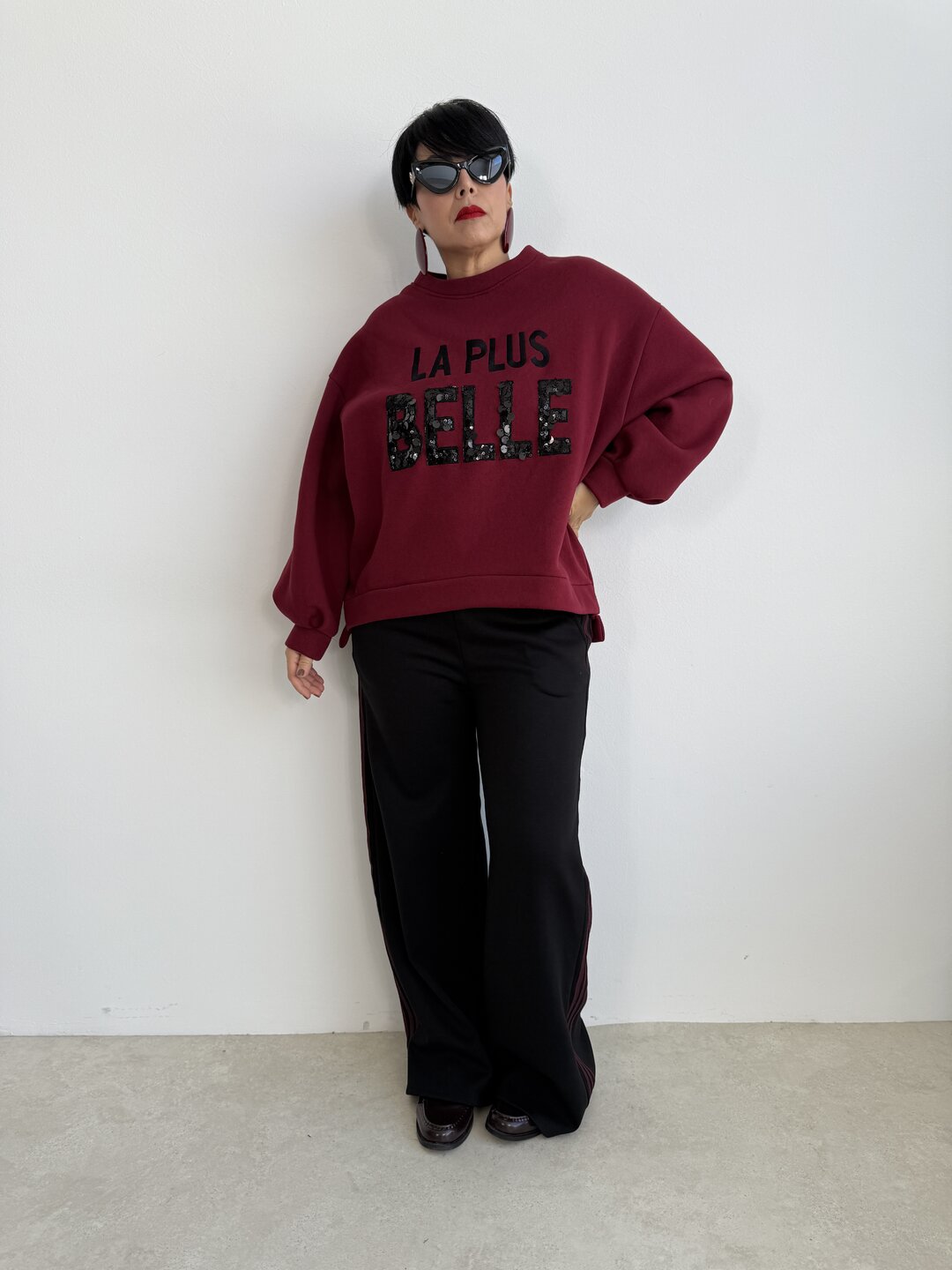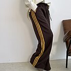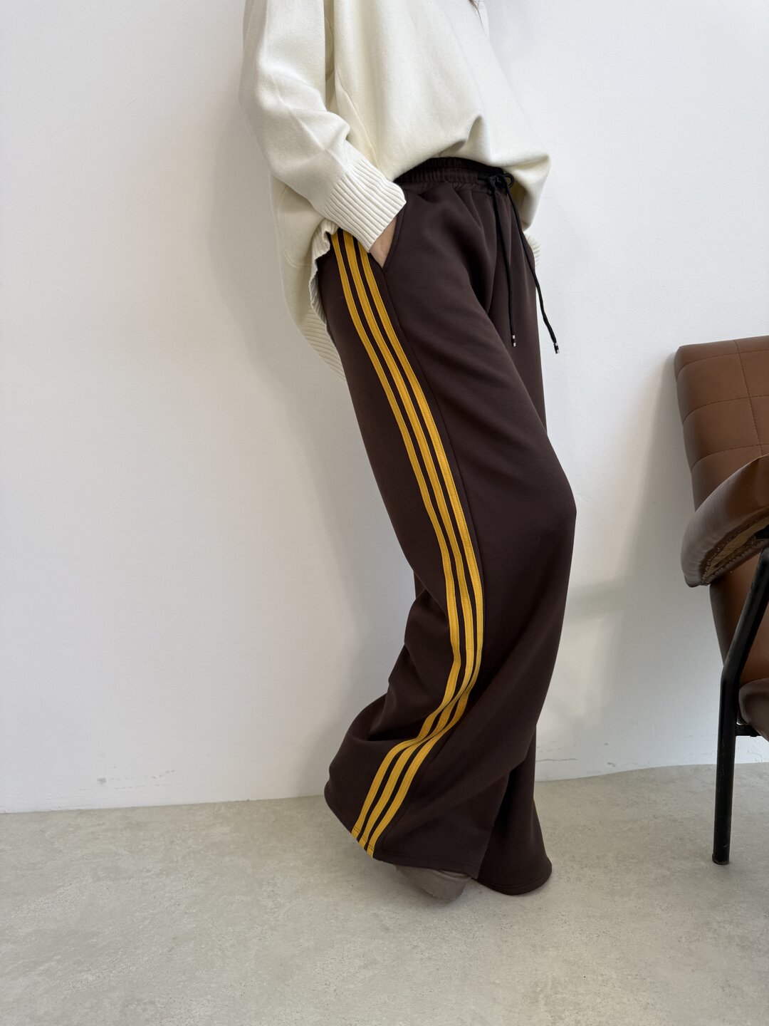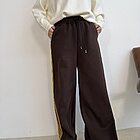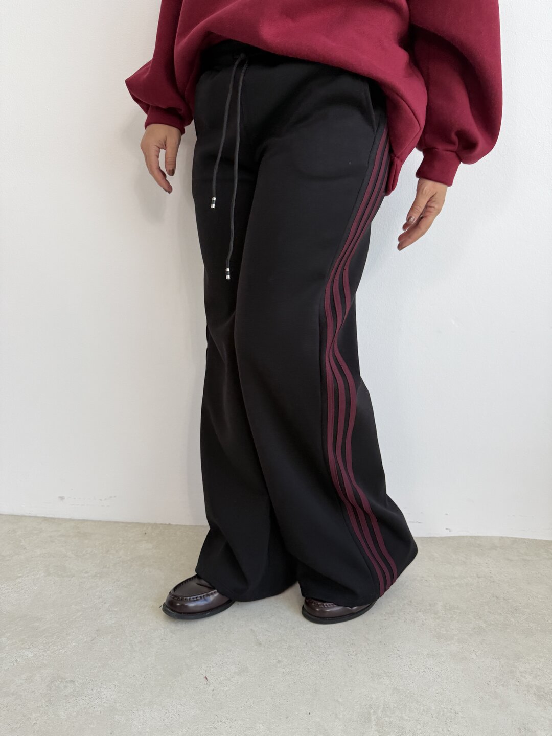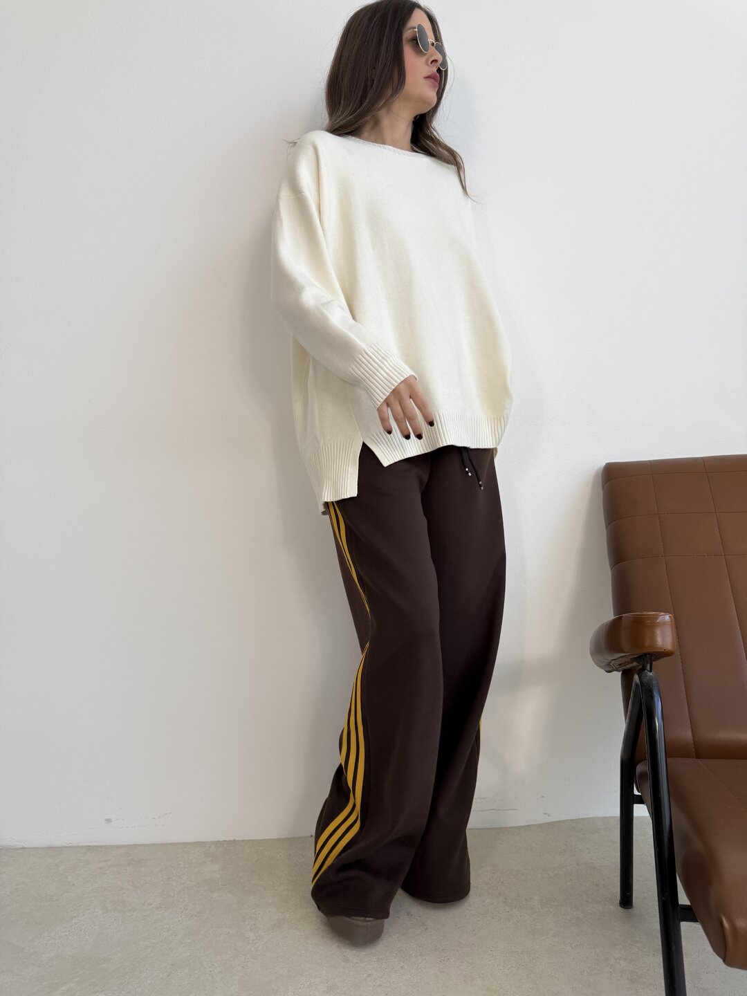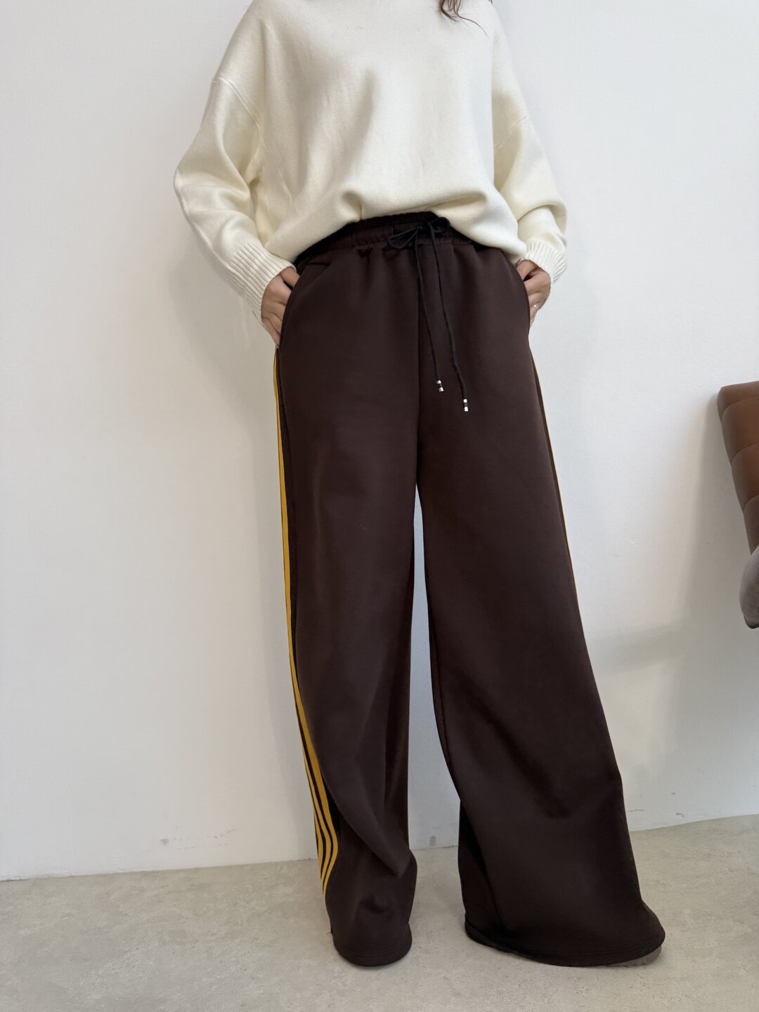 Modello dritto in tessuto scuba – elastico in vita – bande laterali – tasche. Molla in vita con coulisse