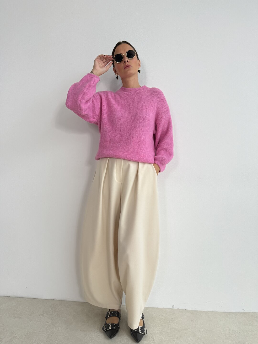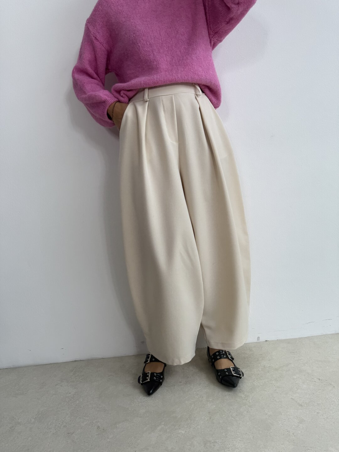 - struttura ad uovo con finta pattina zip. Tasche laterali. Pinces sul davanti. Cinta rimovibile
