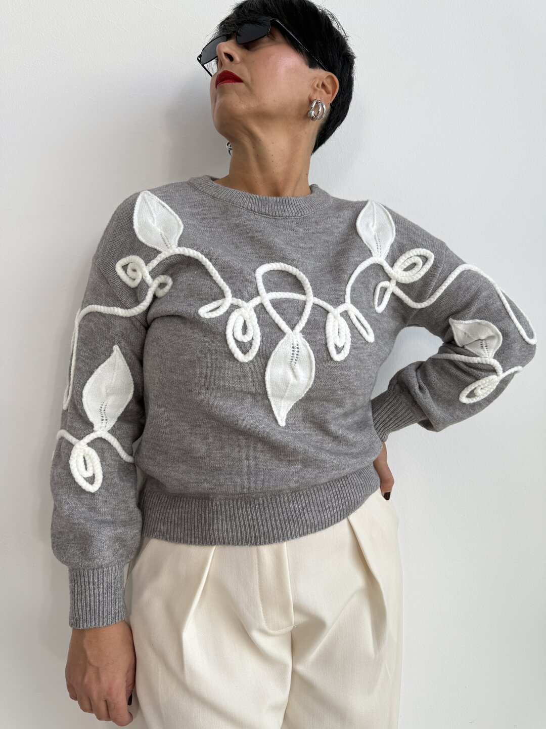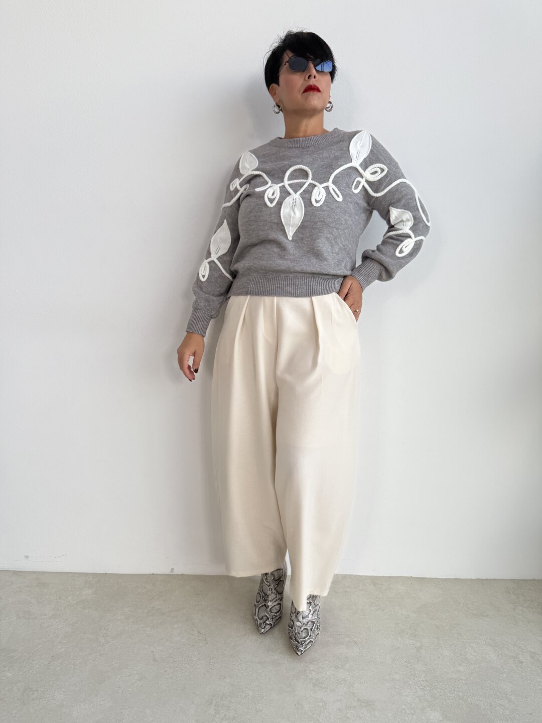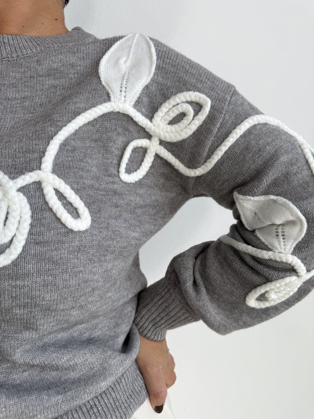 Modello basic girocollo con dettaglio di applicazione sul davanti e sulla manica.