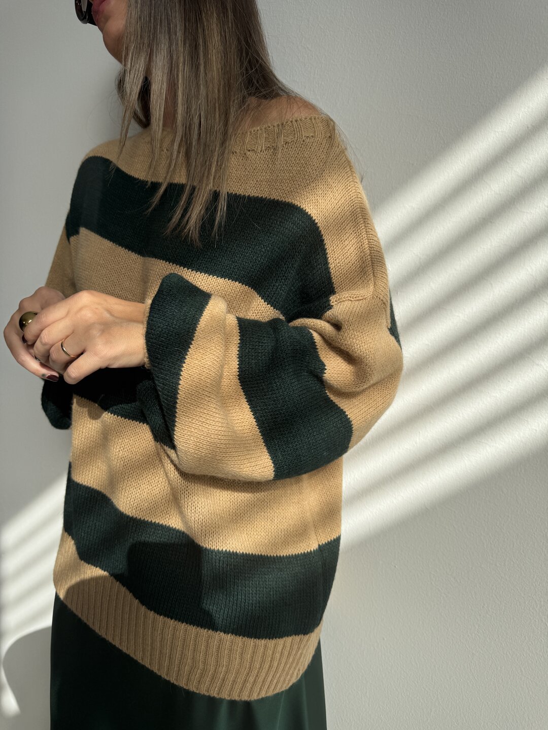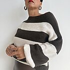 - modello pull a scatola in fantasia rigone. Modello girocollo e manica ad anfora.