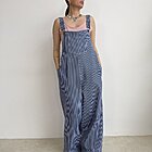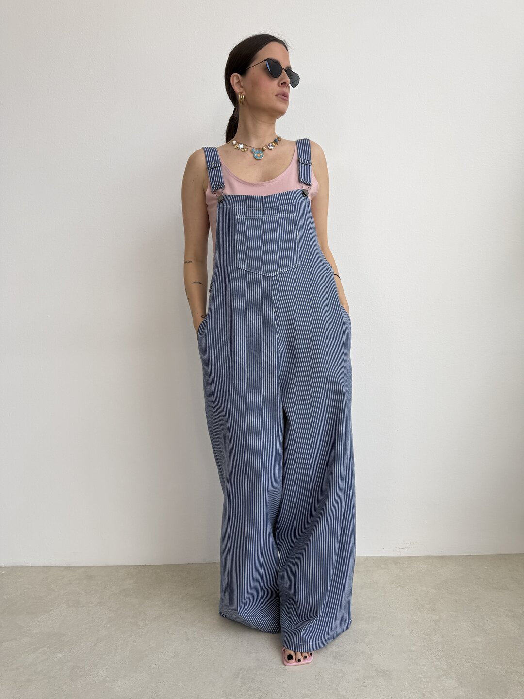 Salopette realizzata in tessuto a righe in 100% cotone.