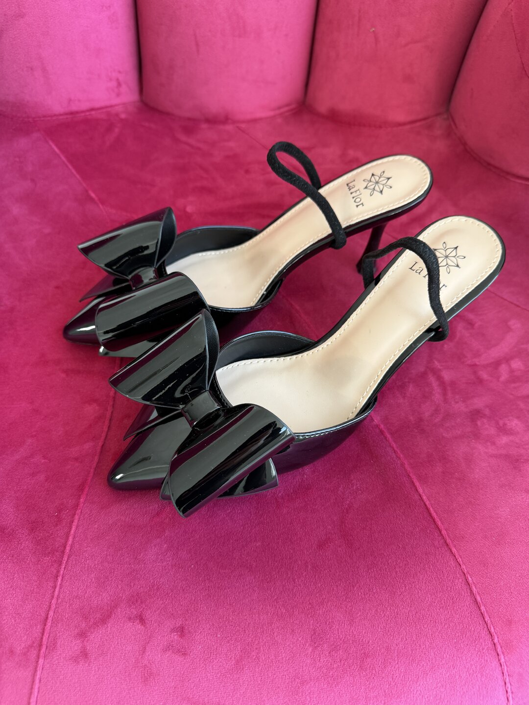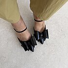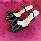 Modello a punta con decoro fiocco rigido su tomaia. Cinturino in elastico. Altezza tacco 7cm