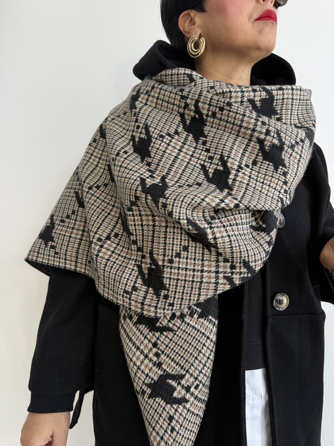 3 colori in fantasia pied poule con motivo stampa logo ripetuto