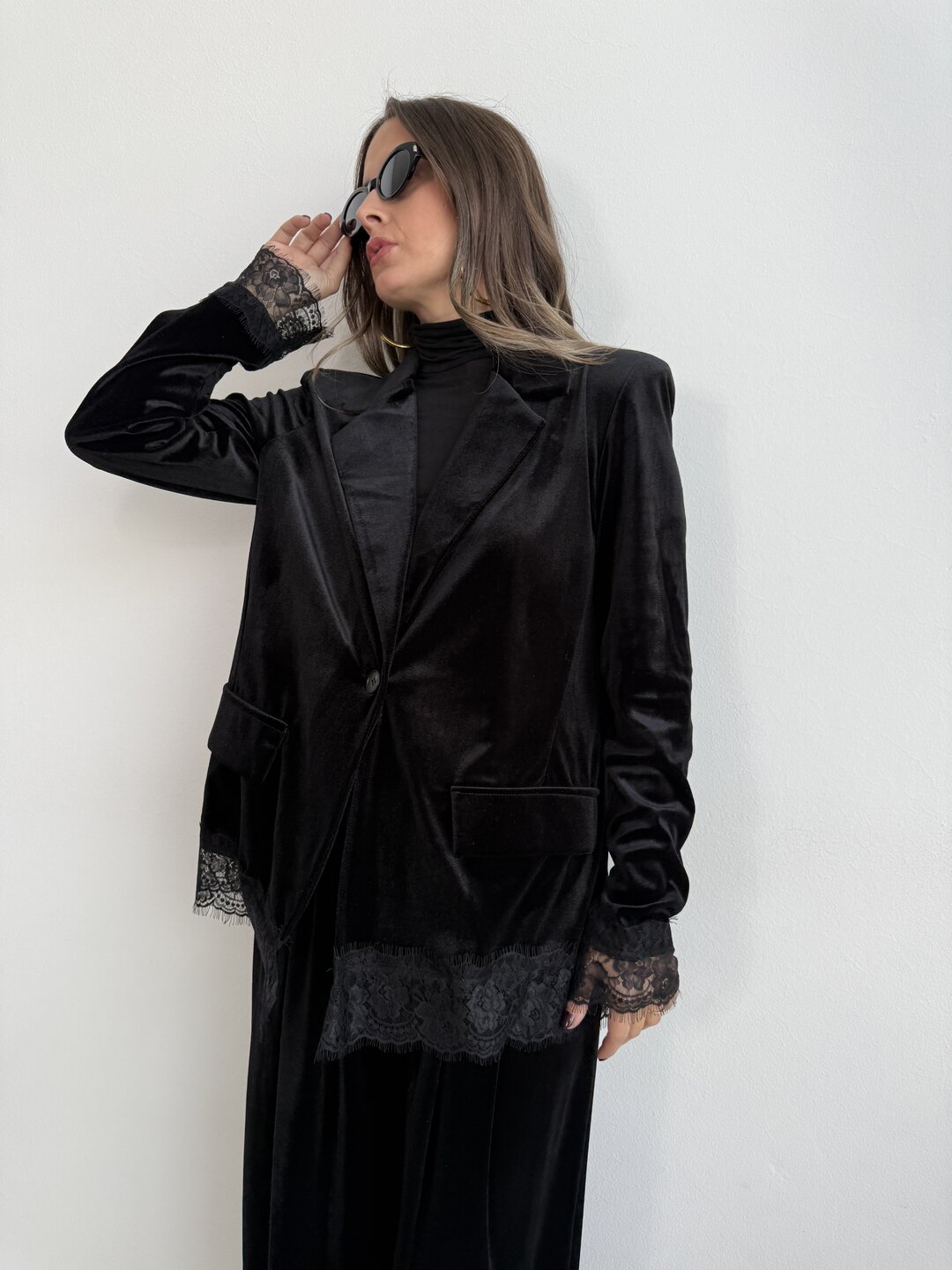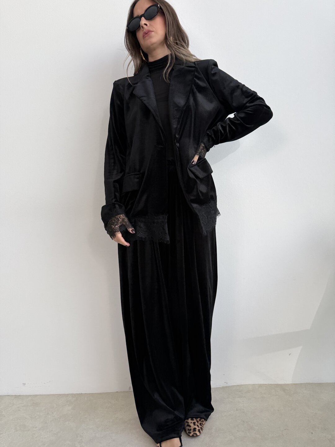 Tailleur velvet pizzo nero
