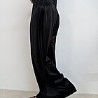 Modello tailleur giacca e pantalone. Giacca sfoderata con spallina e pantalone palazzo con molla in vita senza bottone.