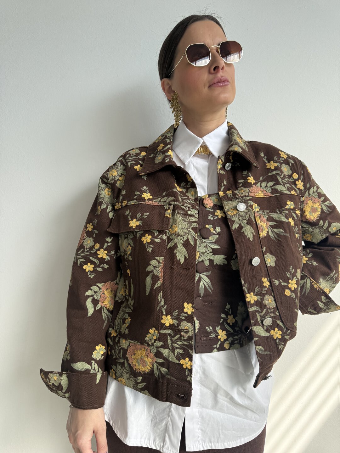 modello scollo a cuore in denim colorato. Allacciatura con bottoni centrali.