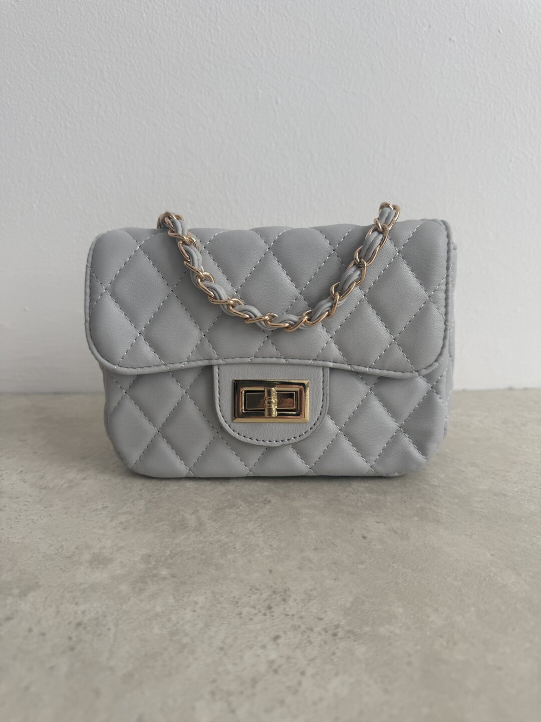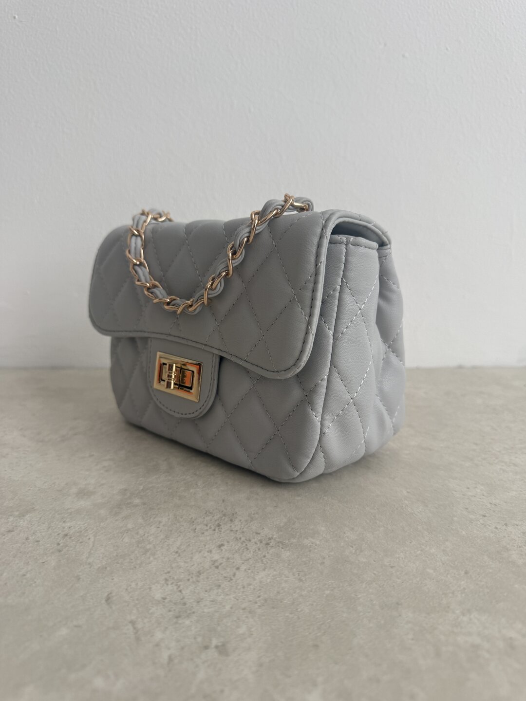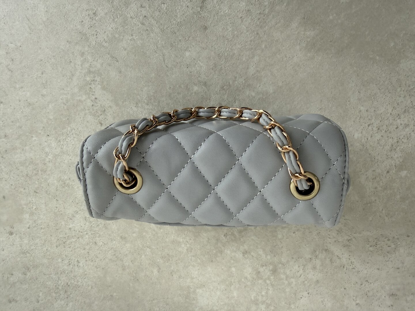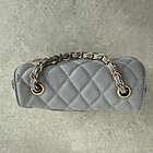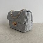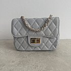 Modello trapunto con tracollina a catena oro regolabile. Chiusura sotto patta con zip. Taschina interna.