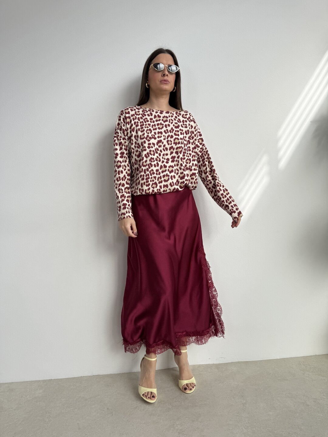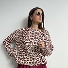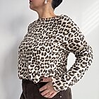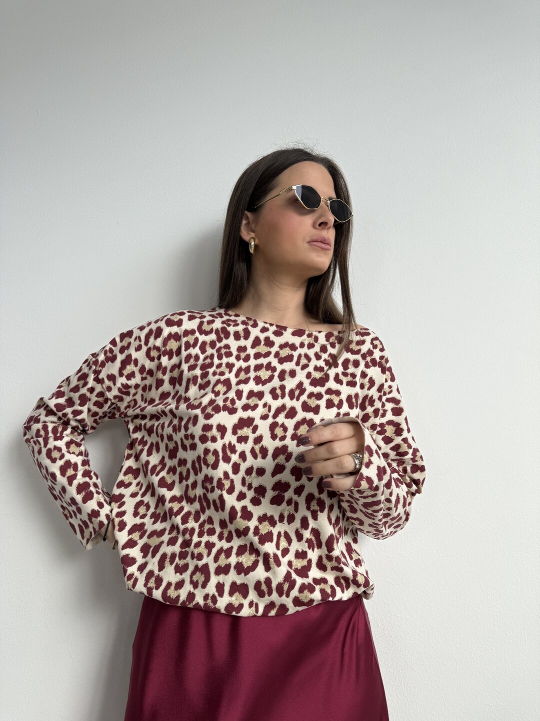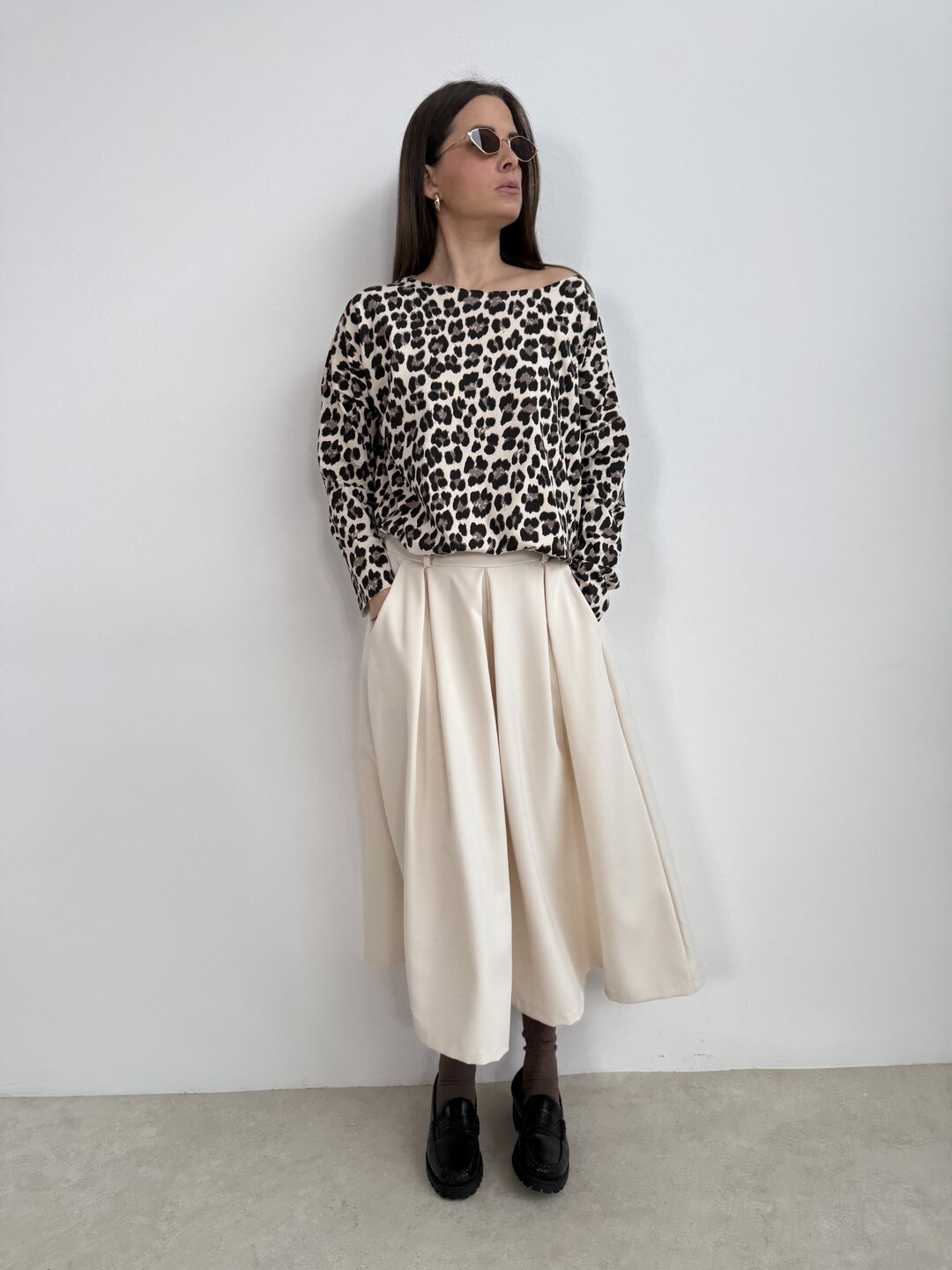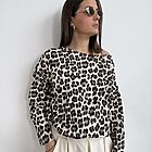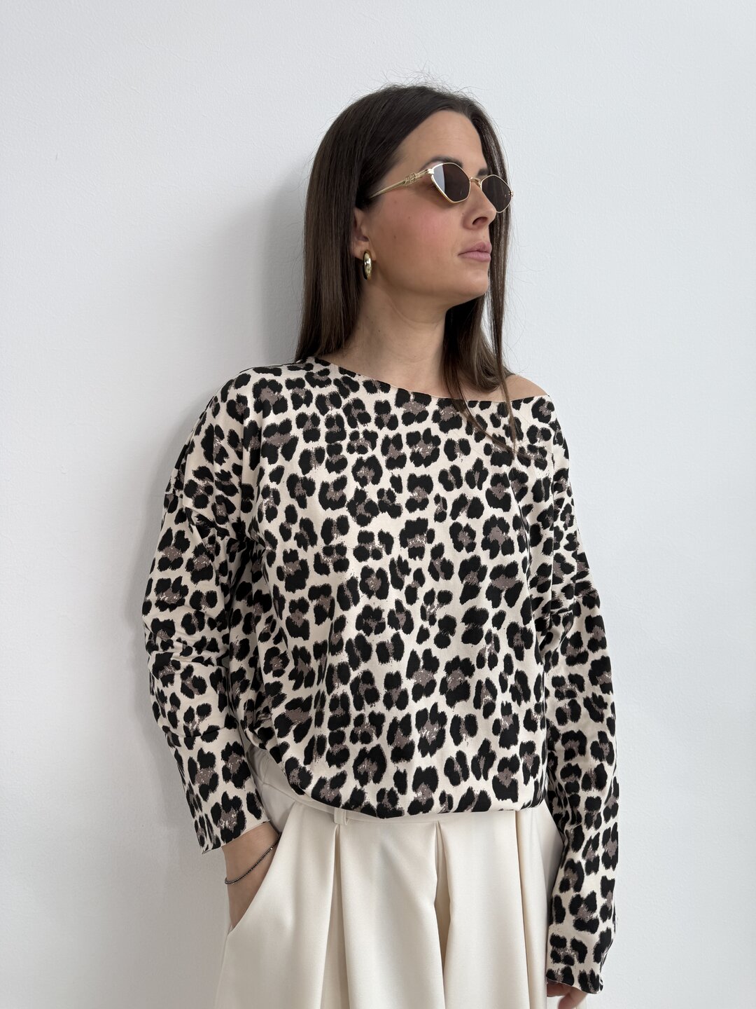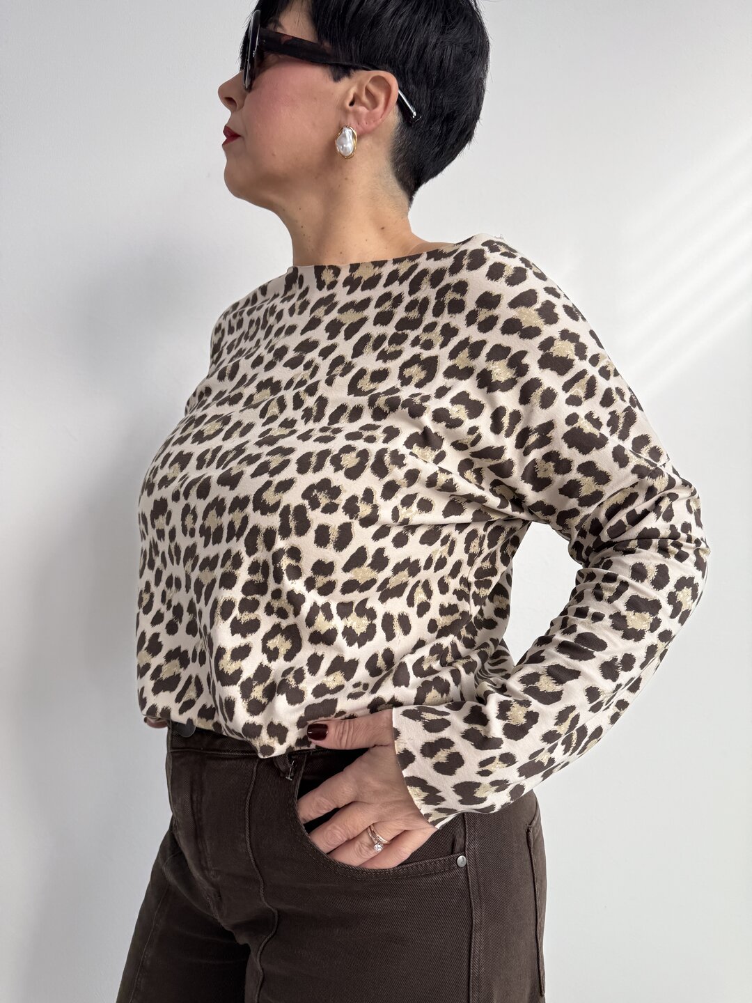 Modello a girocollo taglio laser. Maculata a manica lunga. Taglio della spalla scesa.