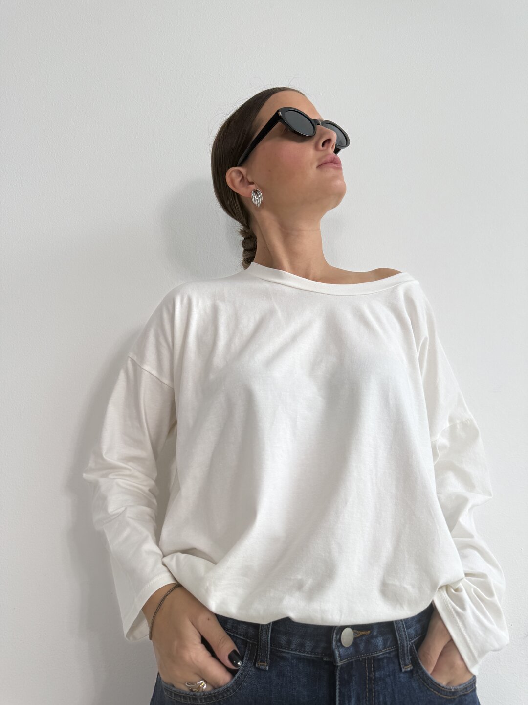 • ts manica lunga con scollo a giro. Modello a scatoletta over.