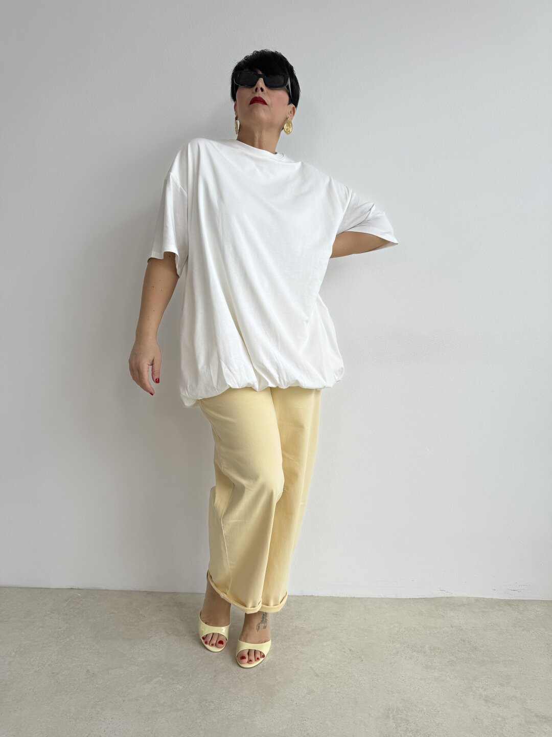 Fondo elasticizzato con arricciatura effetto balloon.